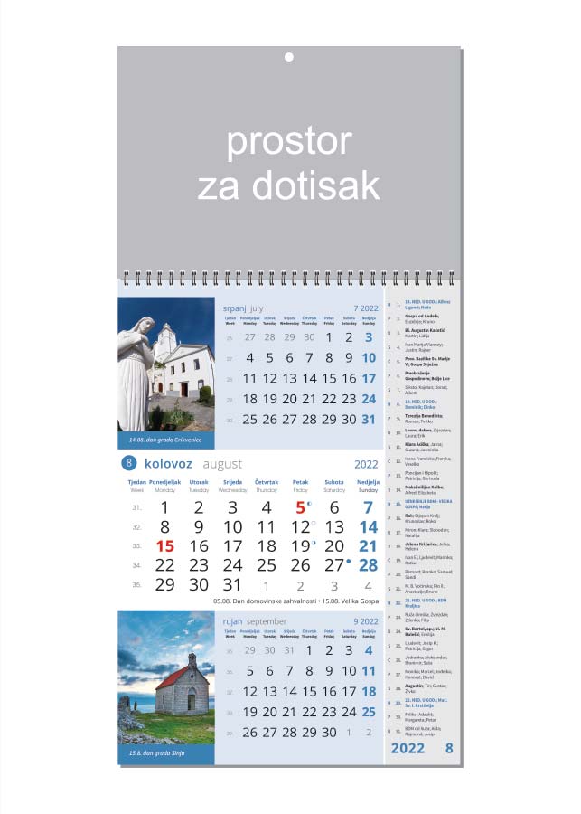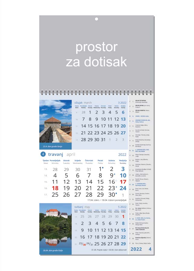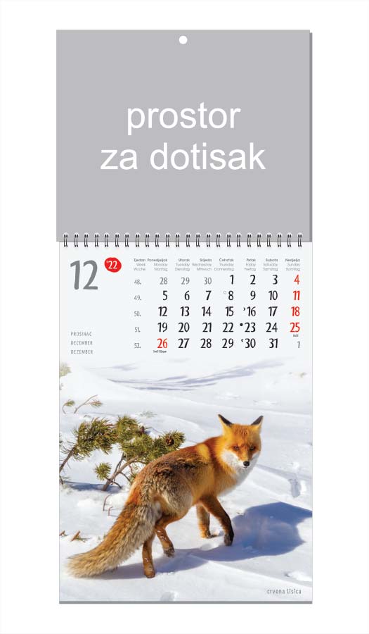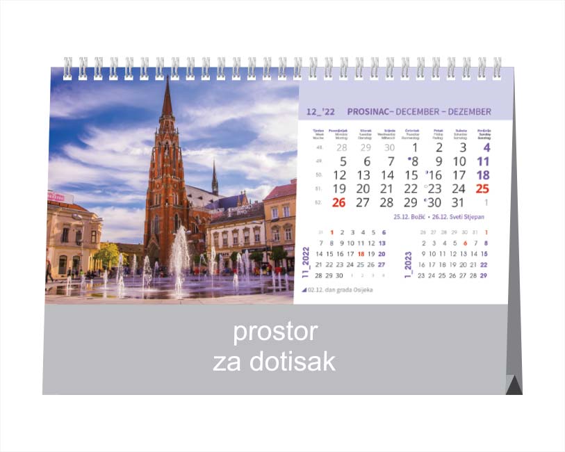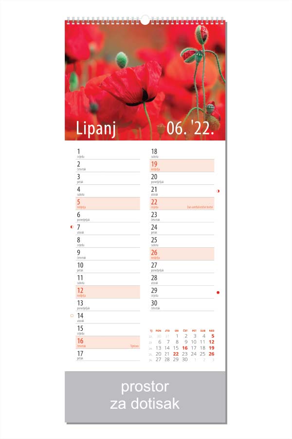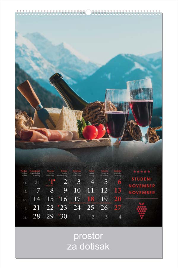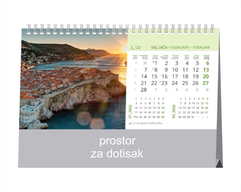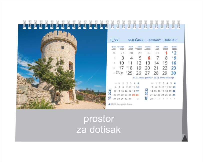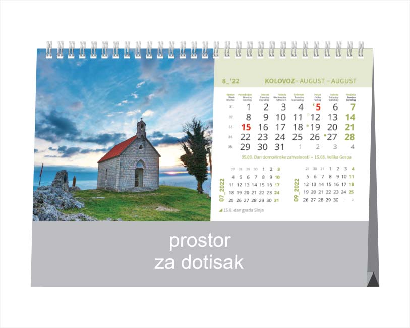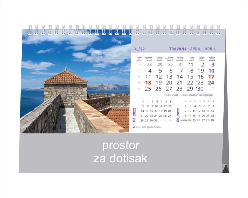 - dotisak: Mogućnost dotiska reklamnog sadržaja na ZAGLAVLJE kalendara