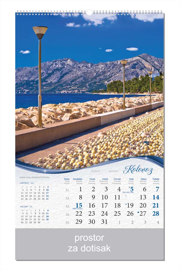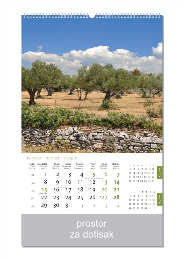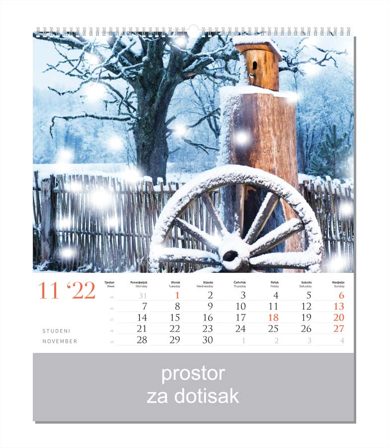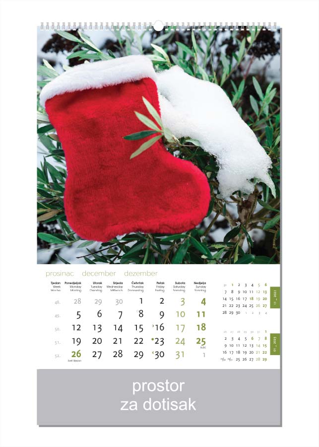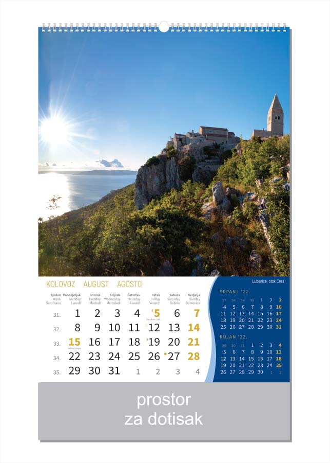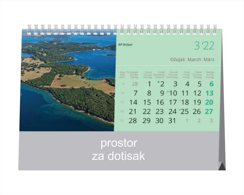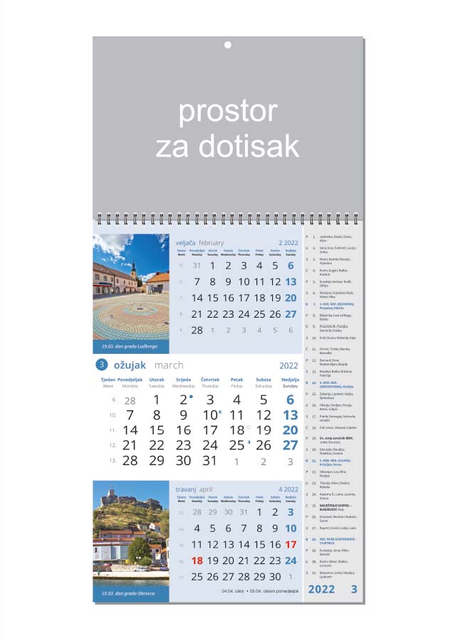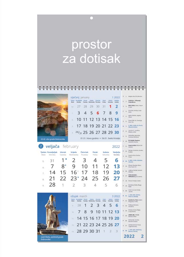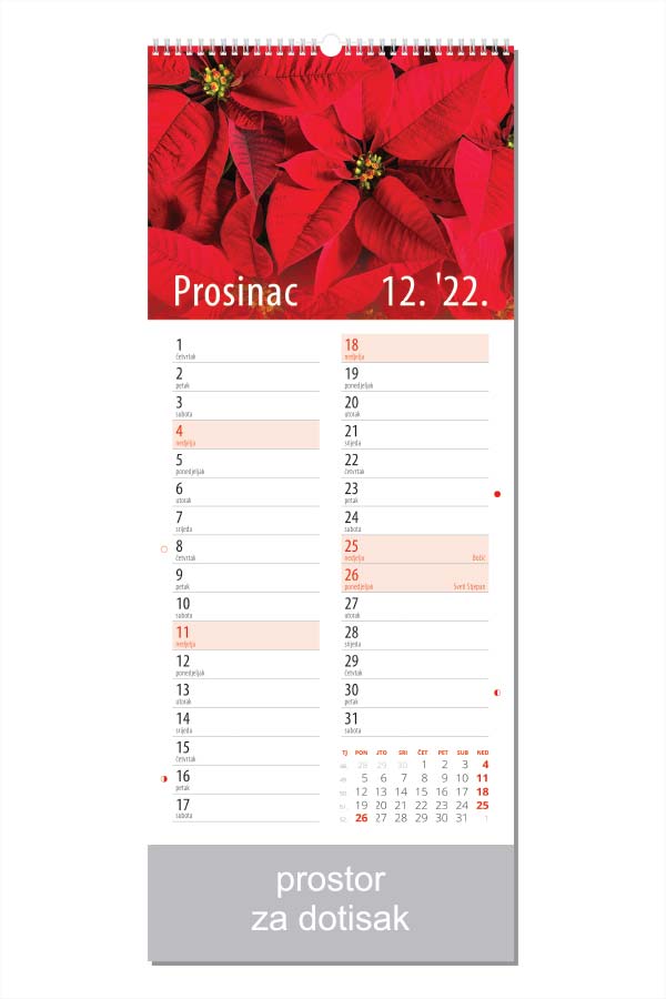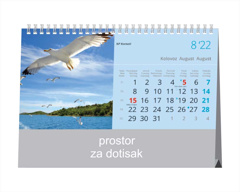 - dotisak: Mogućnost dotiska reklamnog sadržaja na ZAGLAVLJE kalendara