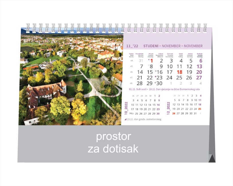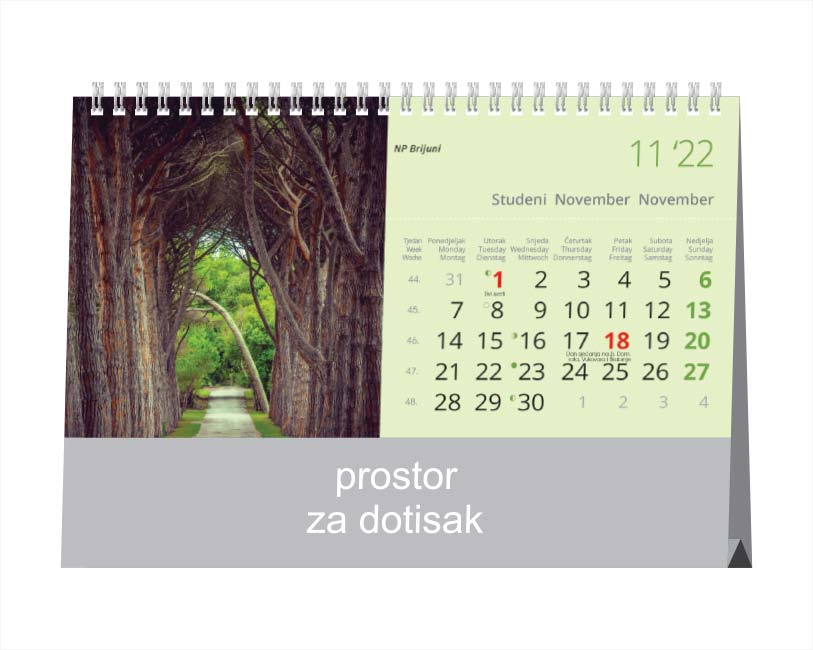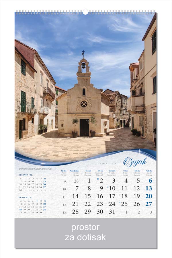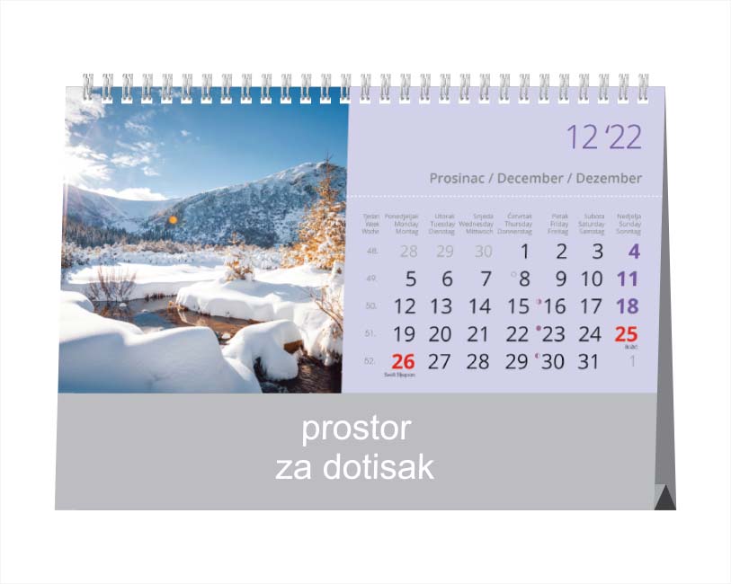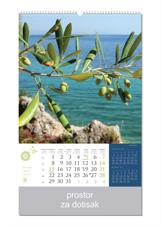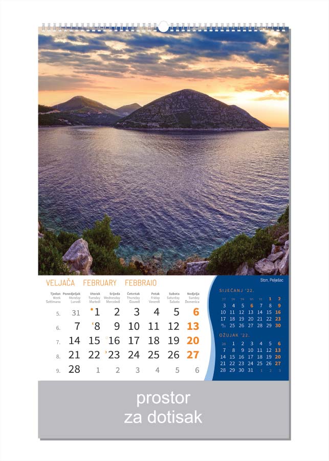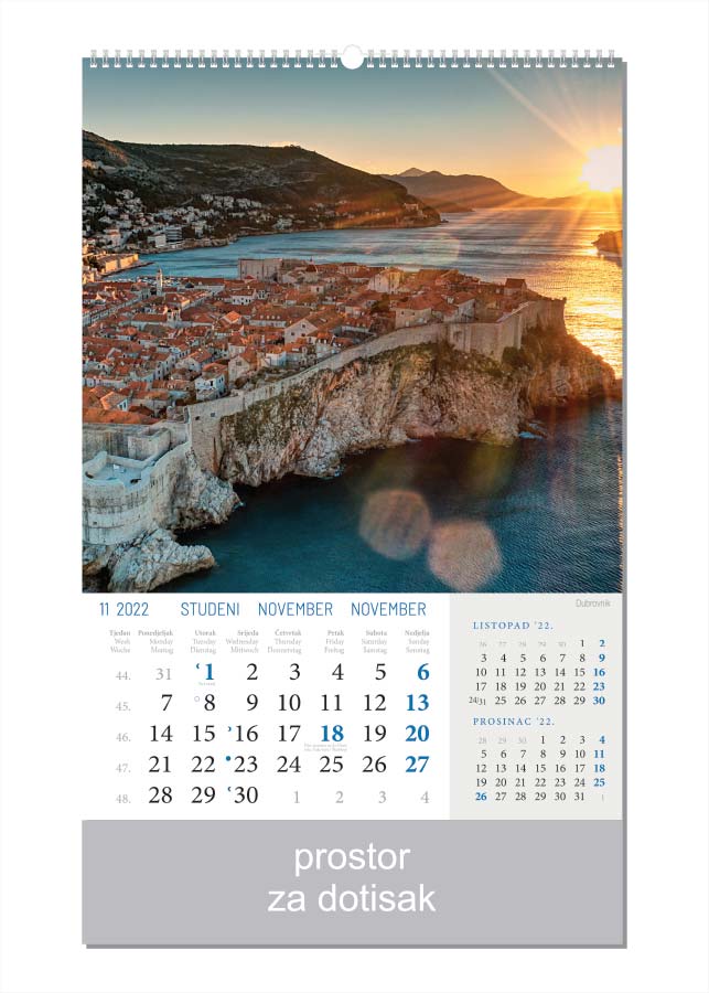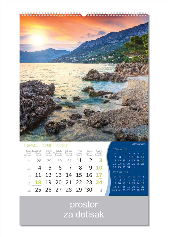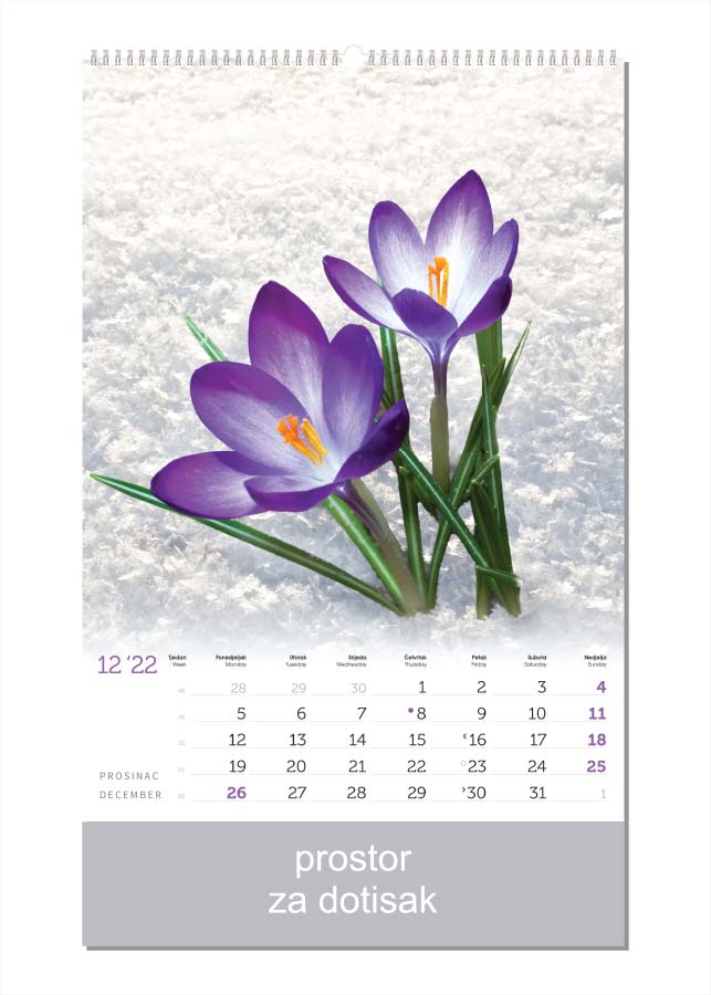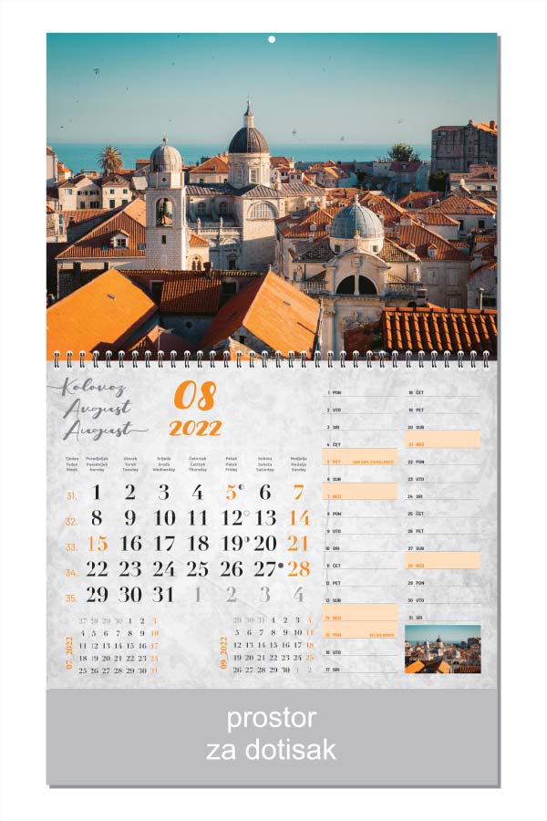 - dotisak: Mogućnost dotiska reklamnog sadržaja na ZAGLAVLJE kalendara
