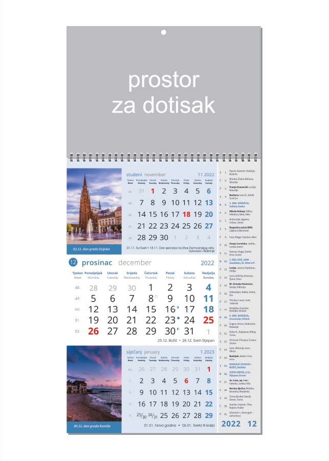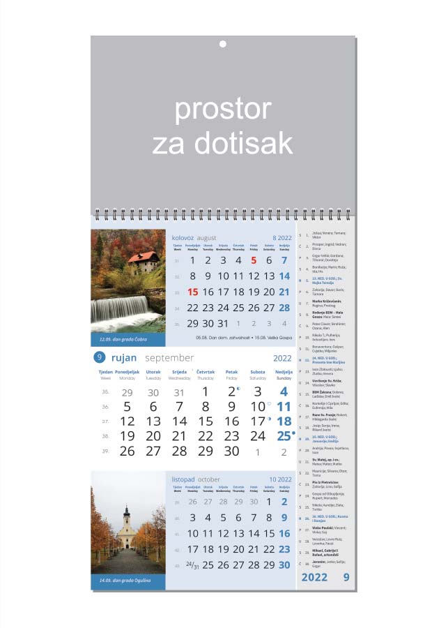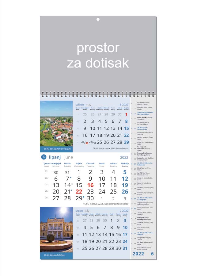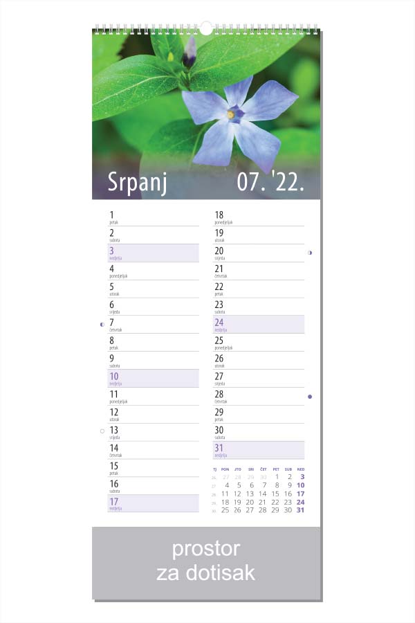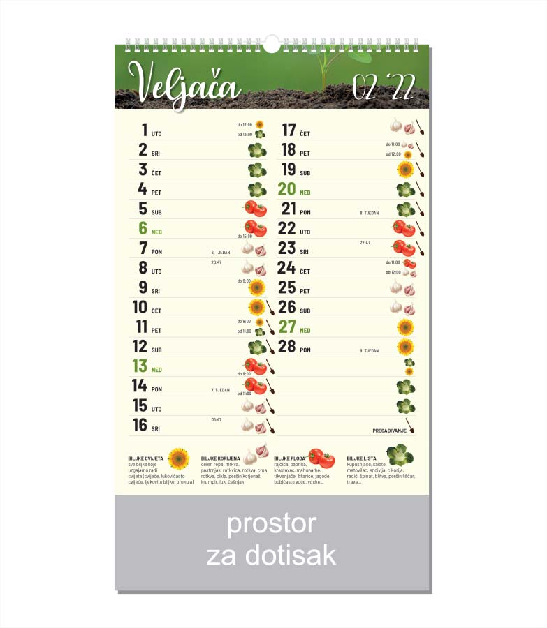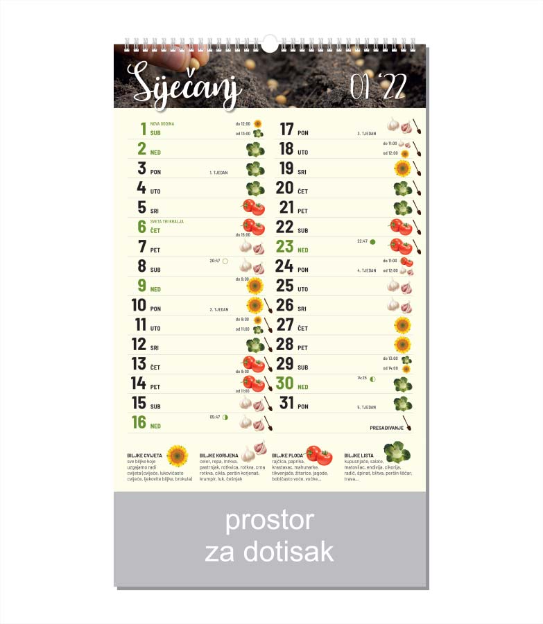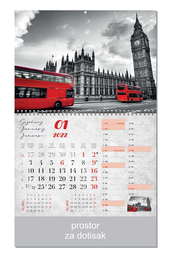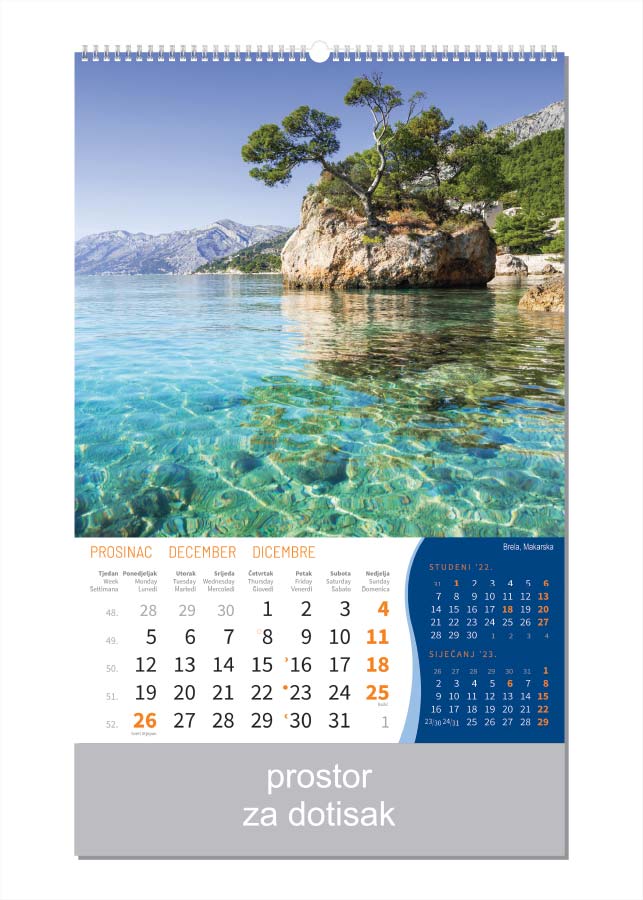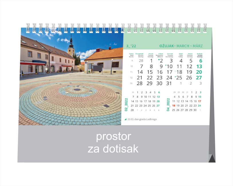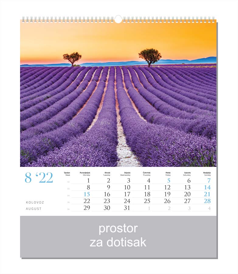 - dotisak: Mogućnost dotiska reklamnog sadržaja na ZAGLAVLJE kalendara