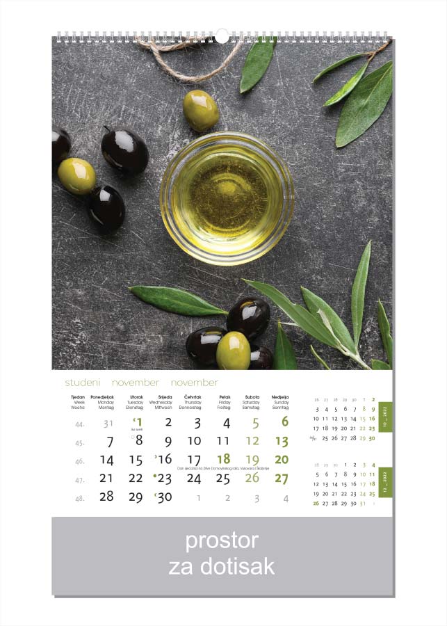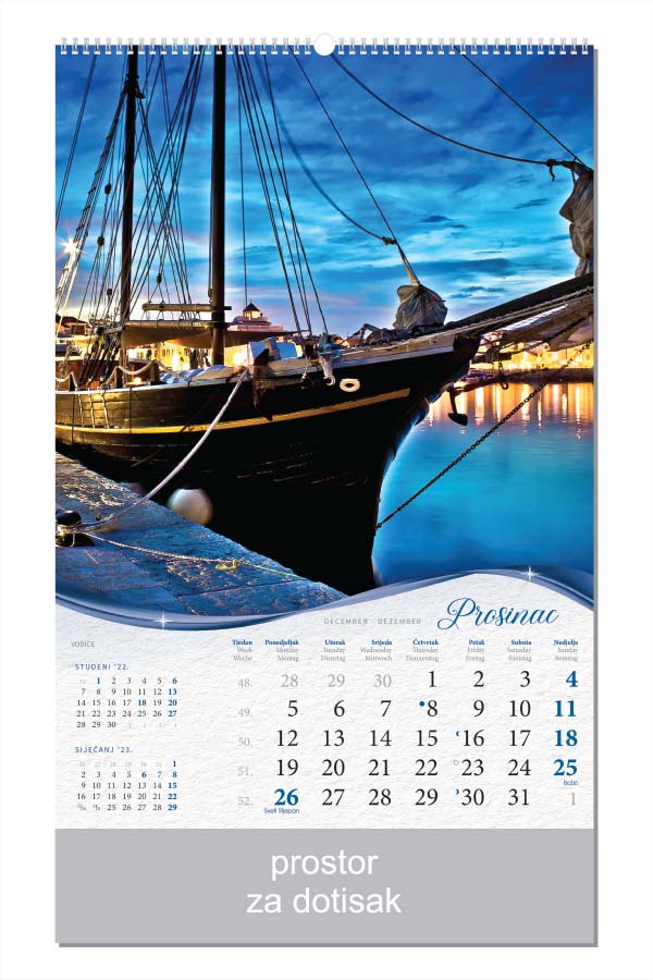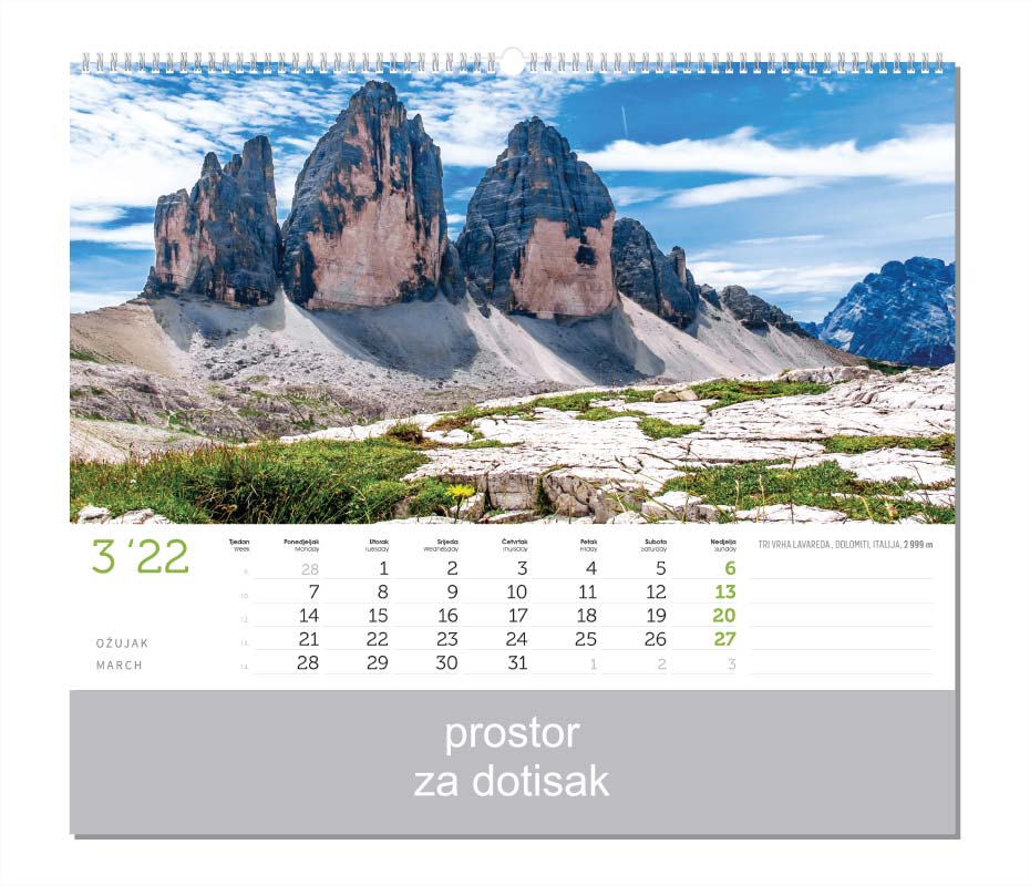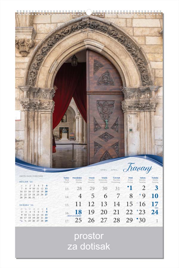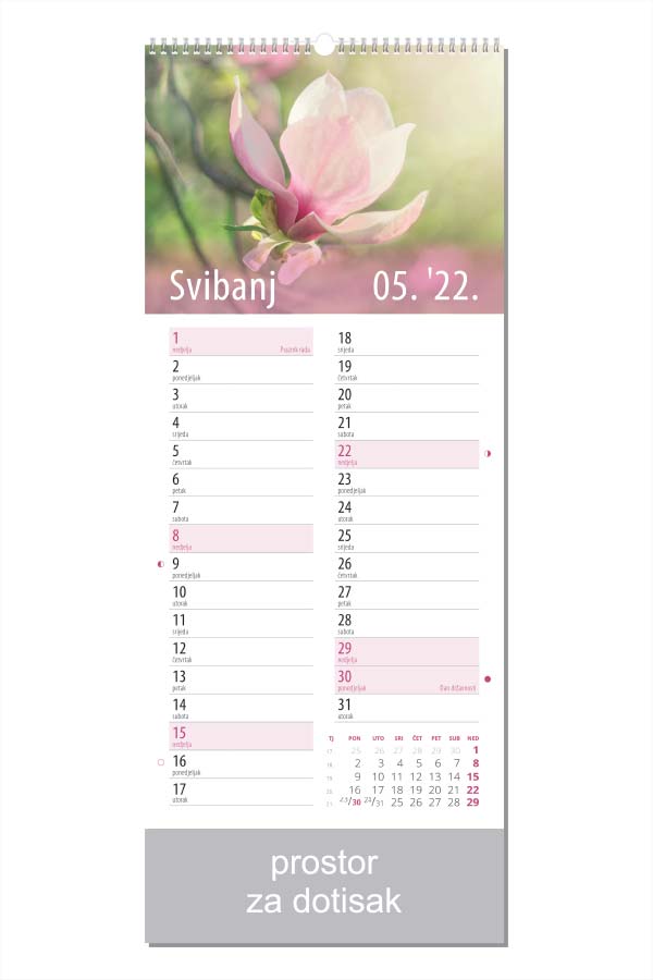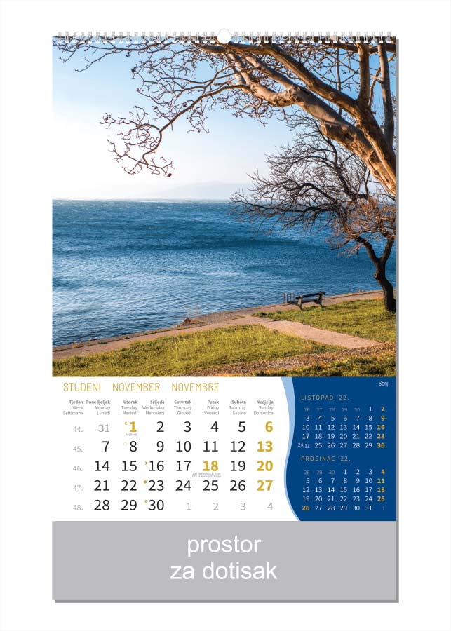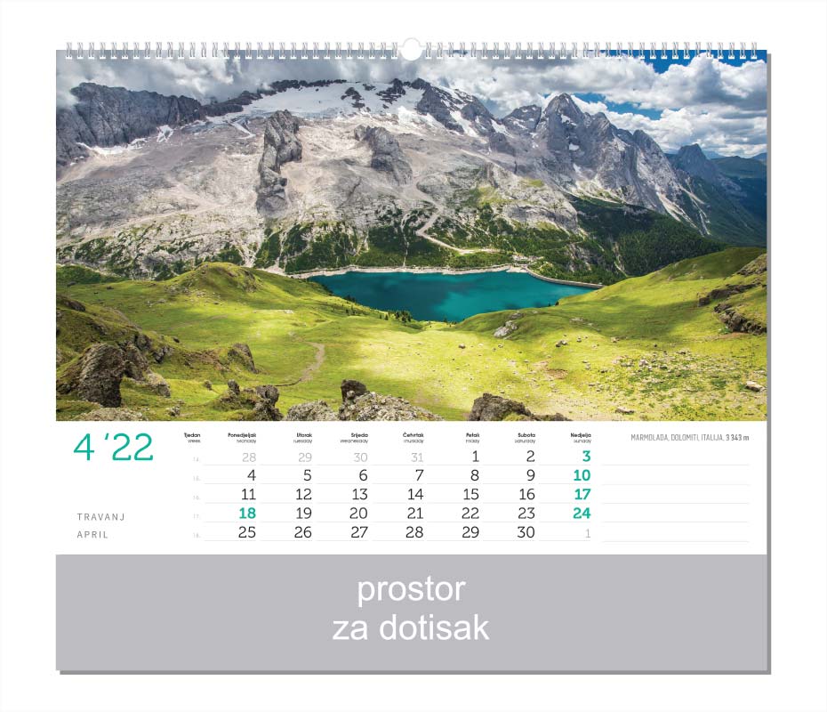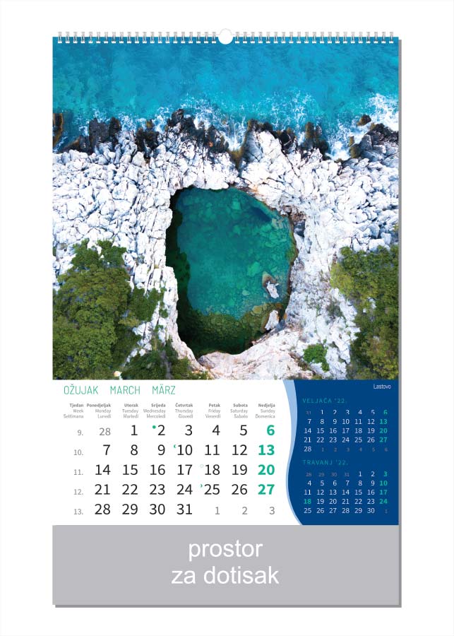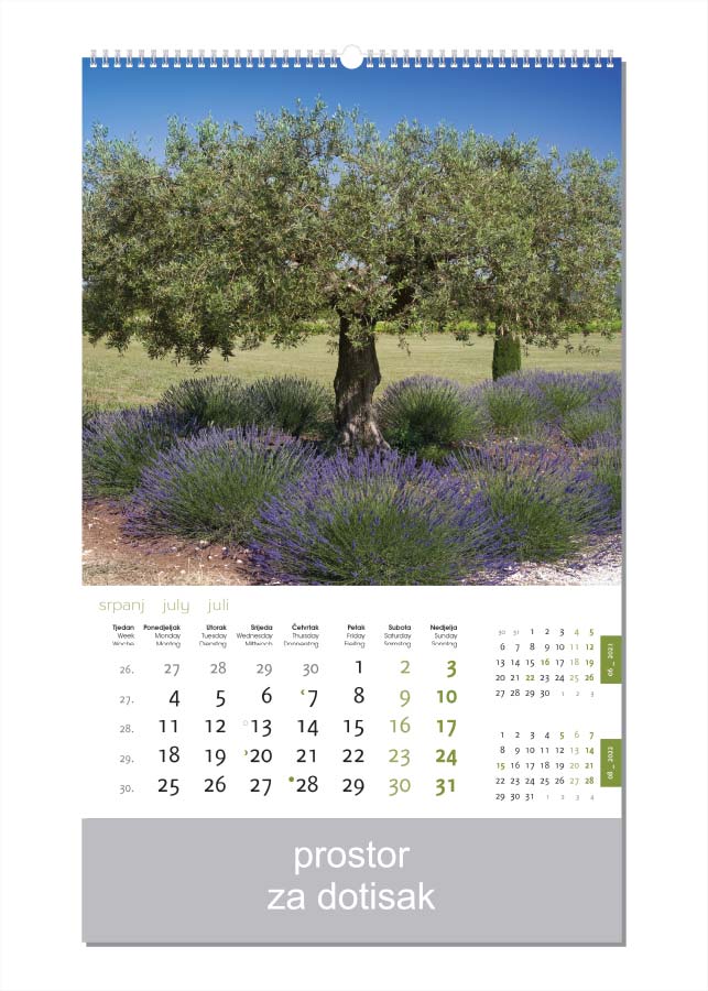 - dotisak: Mogućnost dotiska reklamnog sadržaja na ZAGLAVLJE kalendara