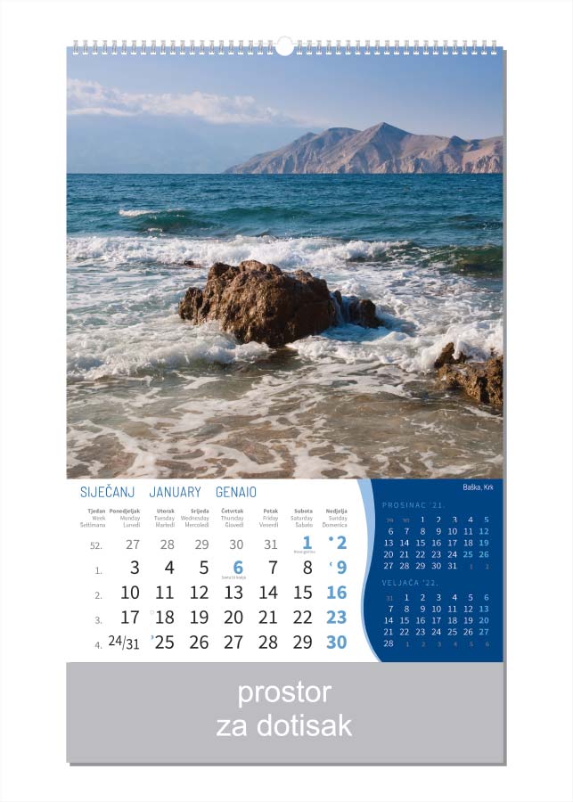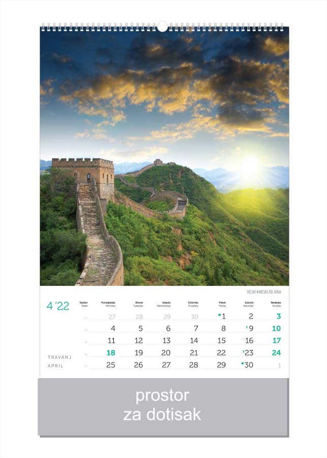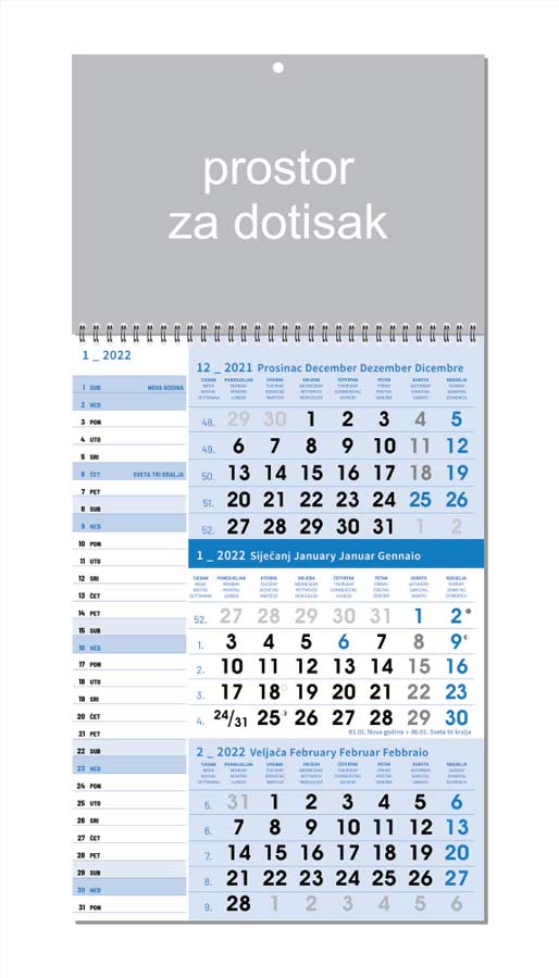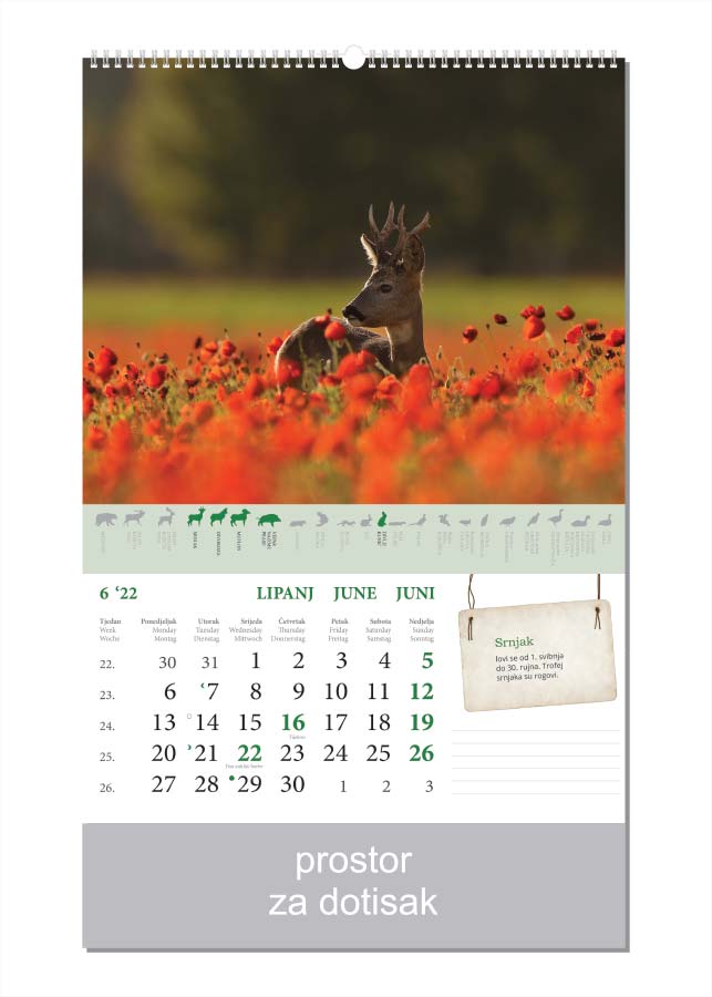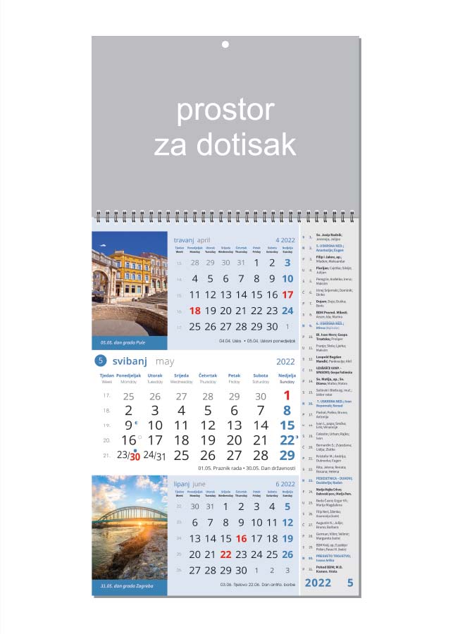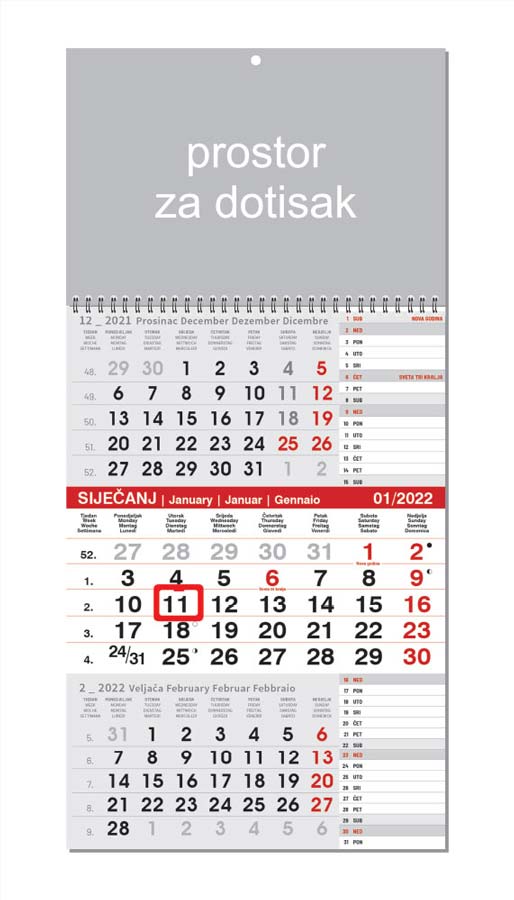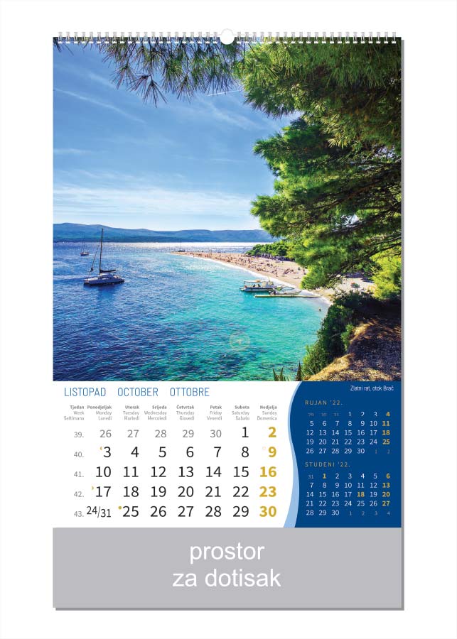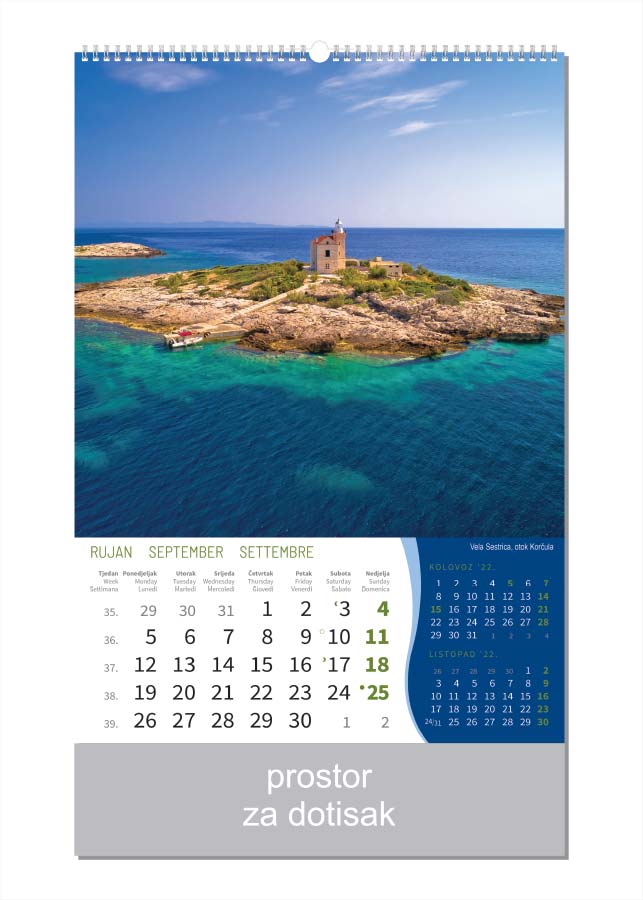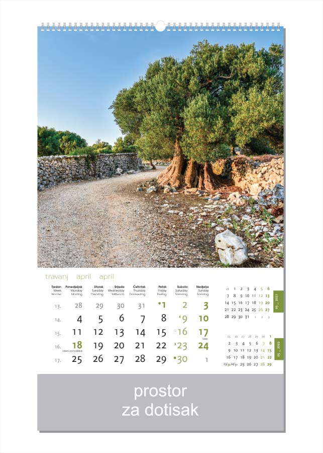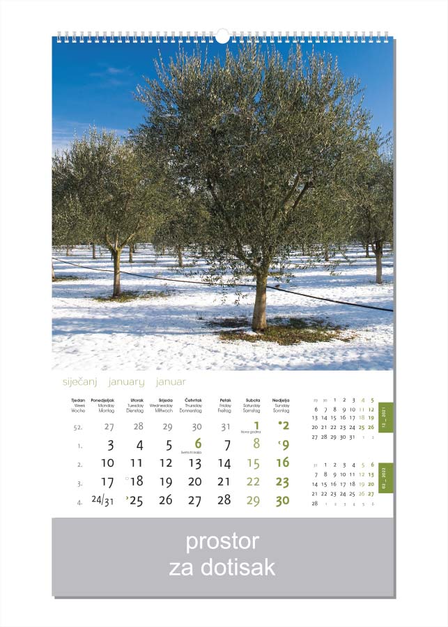 - dotisak: Mogućnost dotiska reklamnog sadržaja na ZAGLAVLJE kalendara