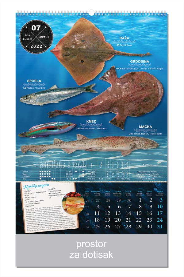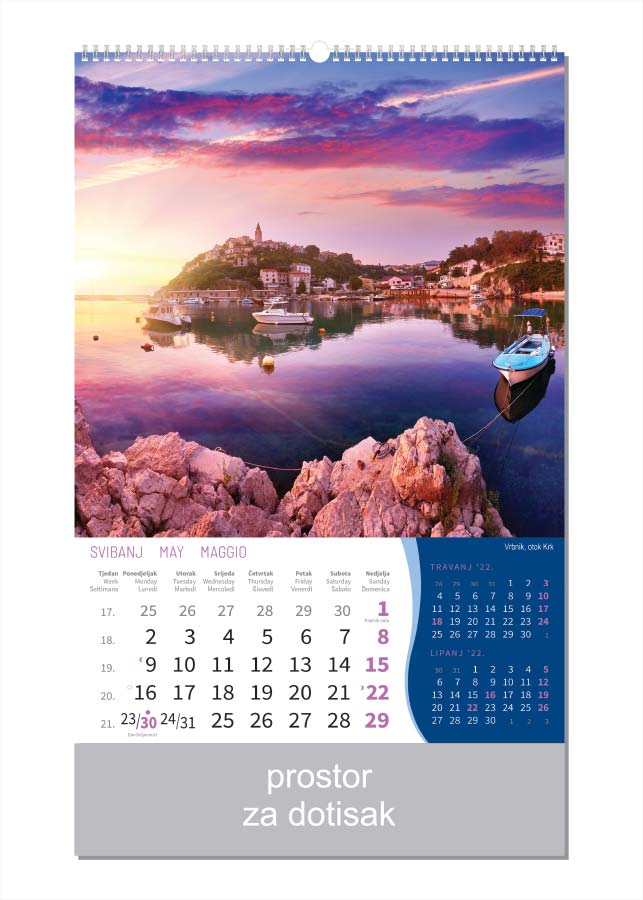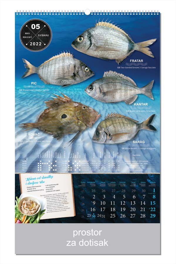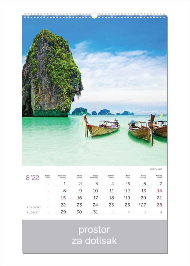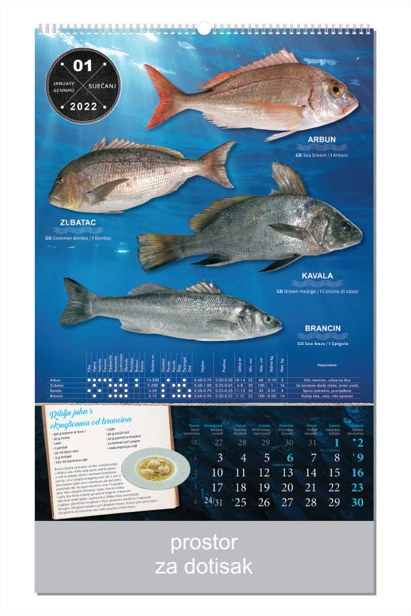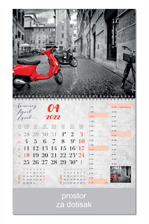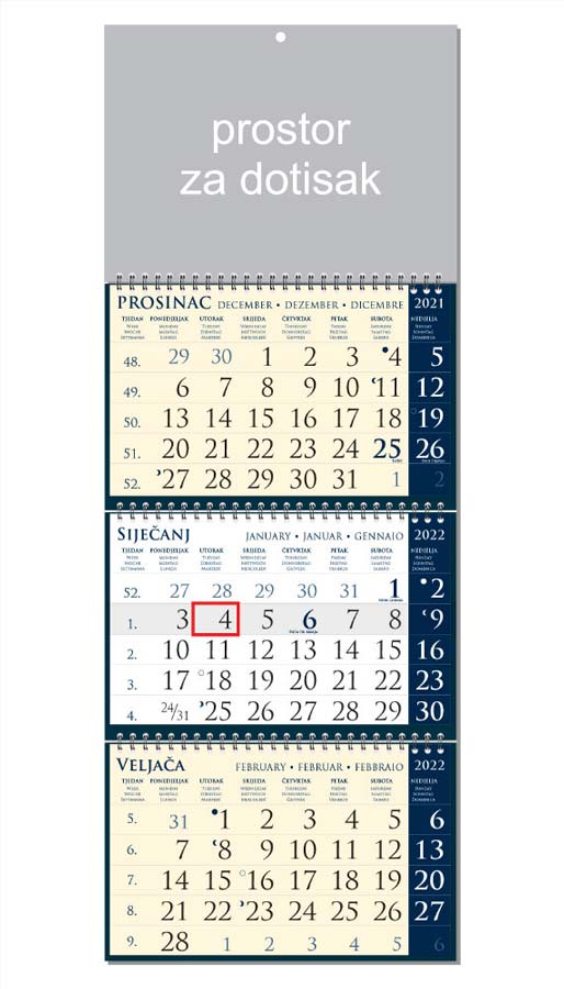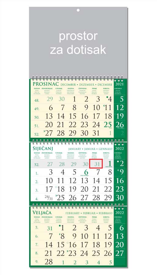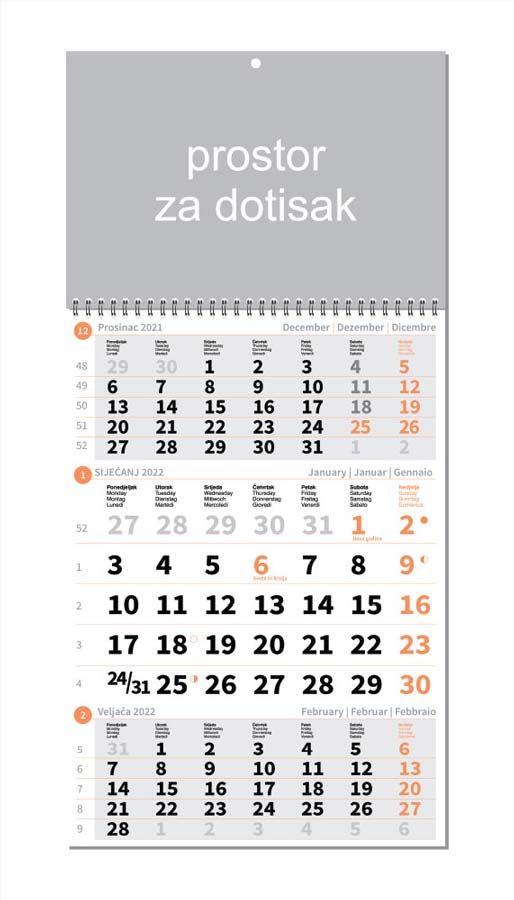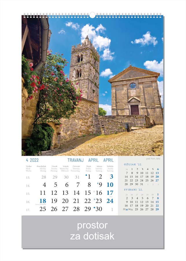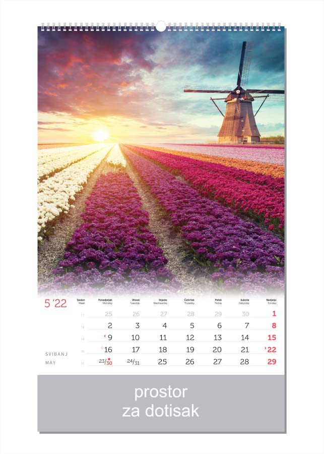 - dotisak: Mogućnost dotiska reklamnog sadržaja na ZAGLAVLJE kalendara