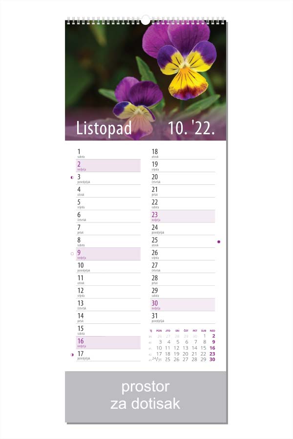 - dotisak: Mogućnost dotiska reklamnog sadržaja na PASICU kalendara