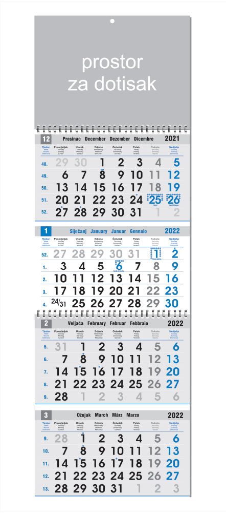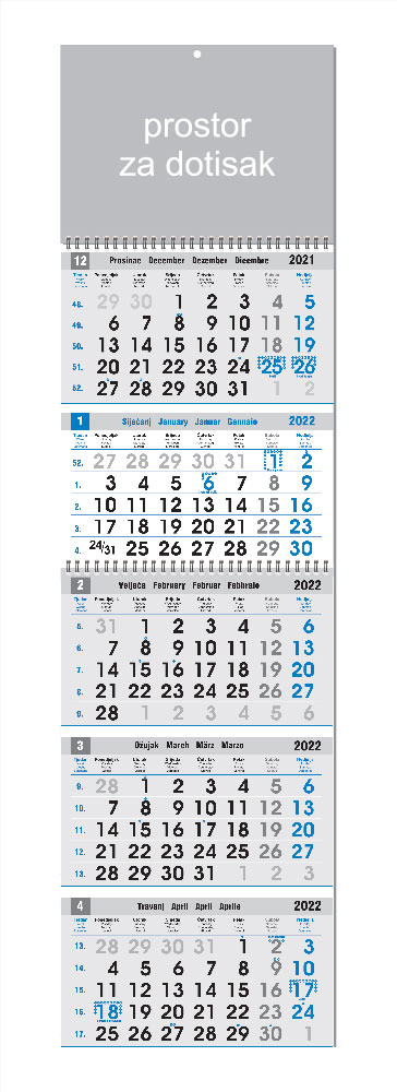 POSLOVNI KALENDARI 4-DJELNI PLAVO-SIVI