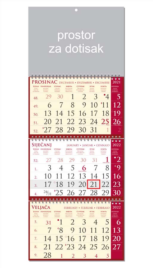 TRODJELNI POSLOVNI KALENDARI "SIVO-CRVENI"