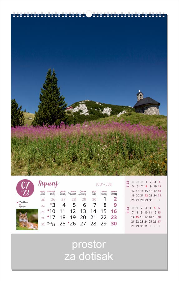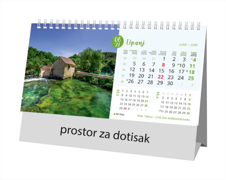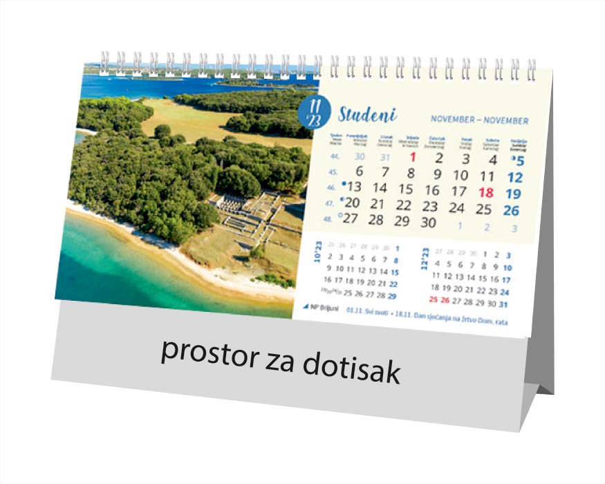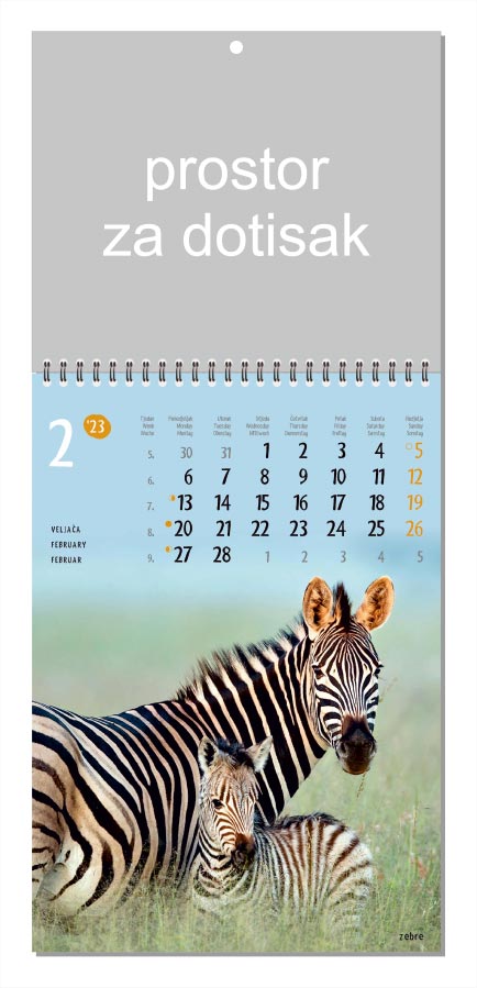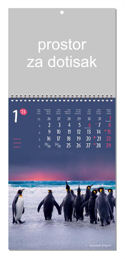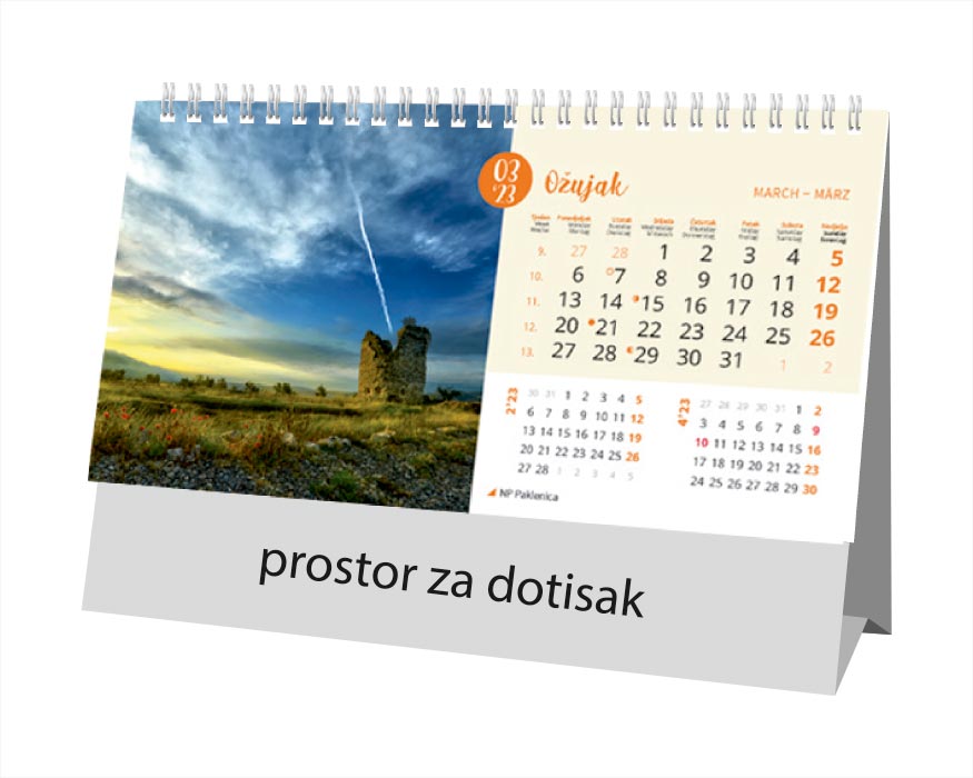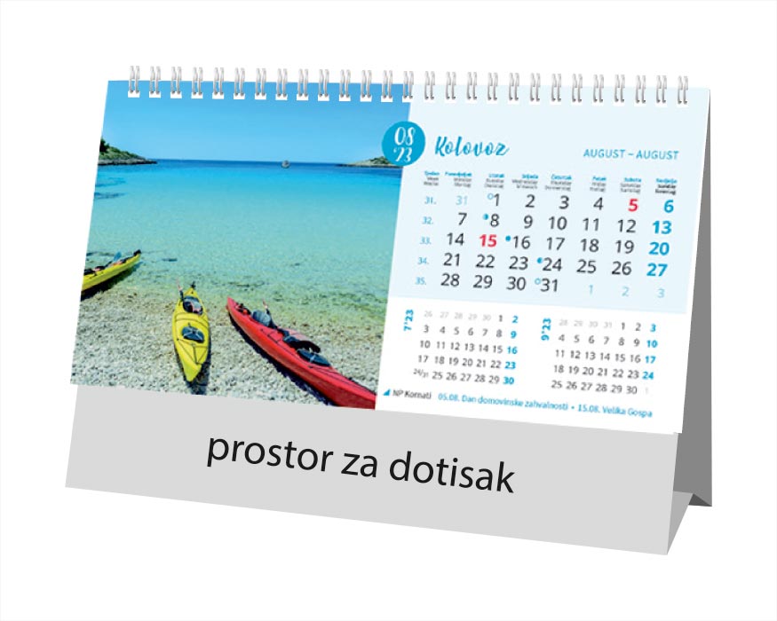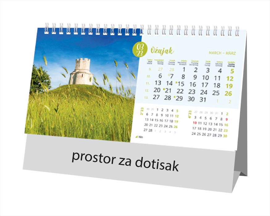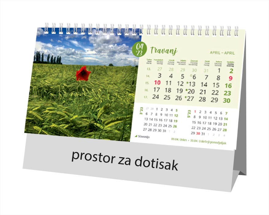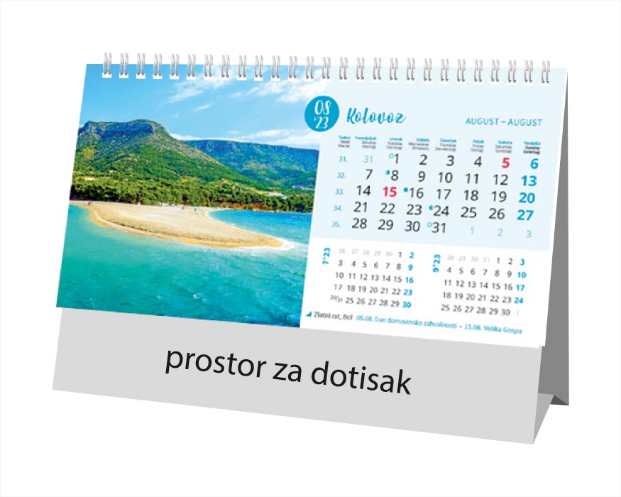 - dotisak: Mogućnost dotiska reklamnog sadržaja na ZAGLAVLJE kalendara