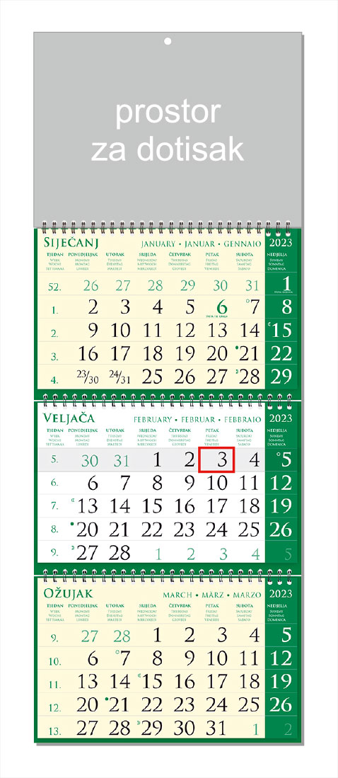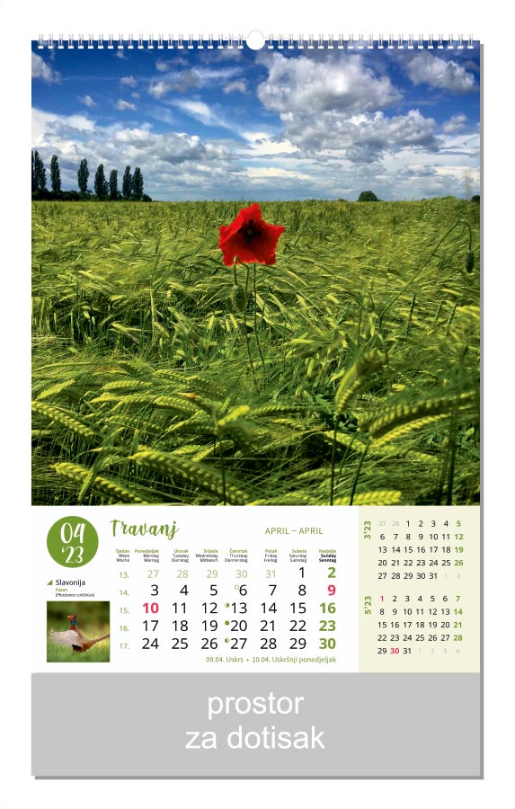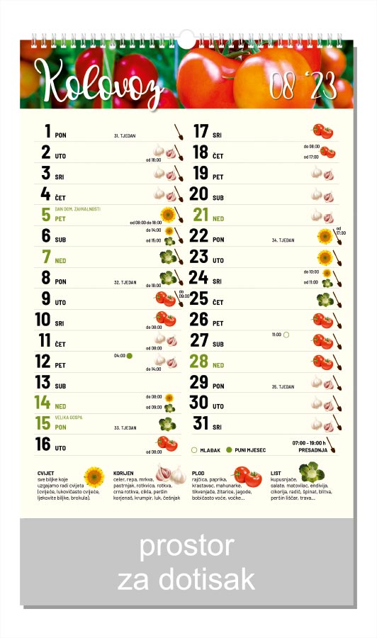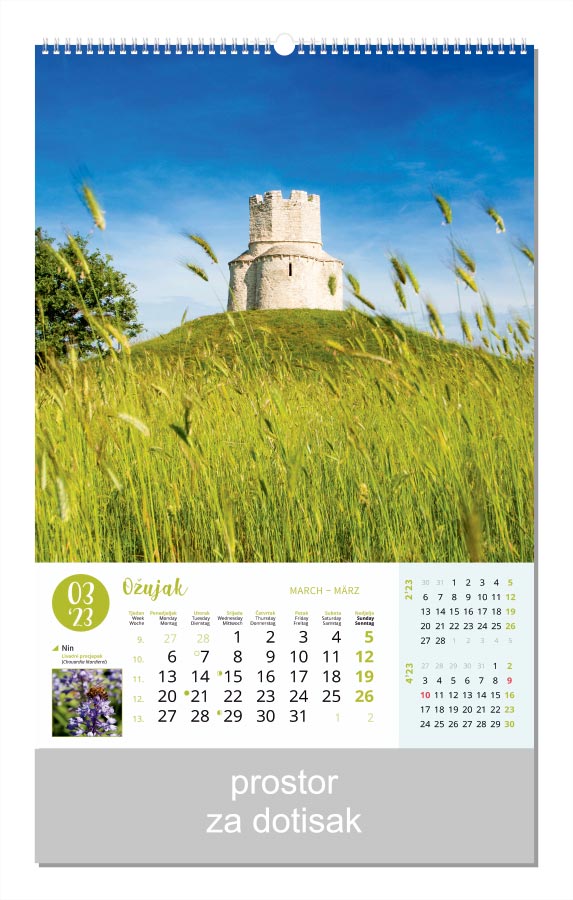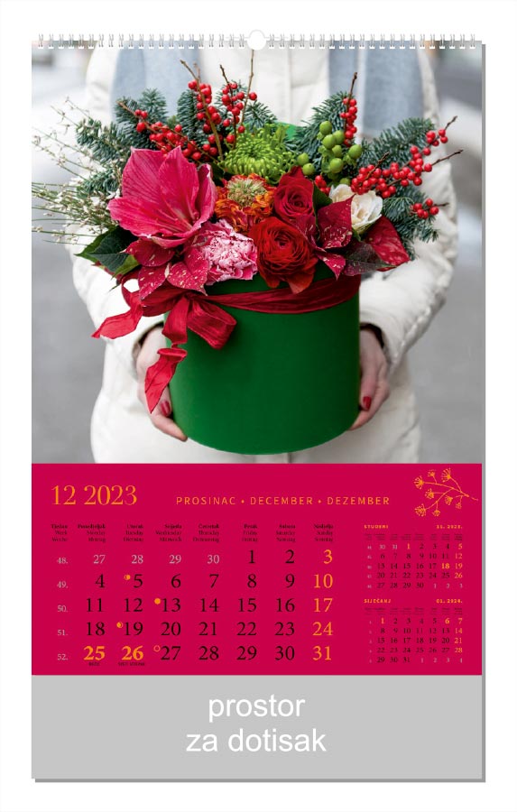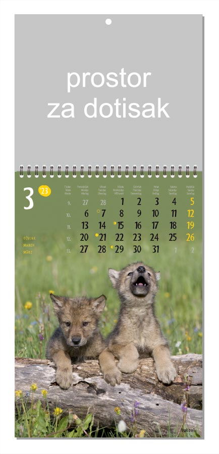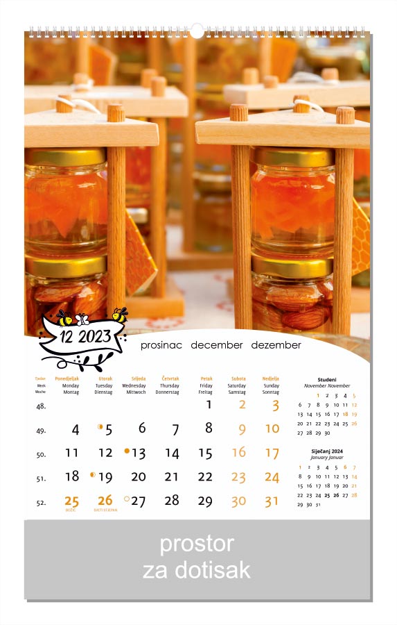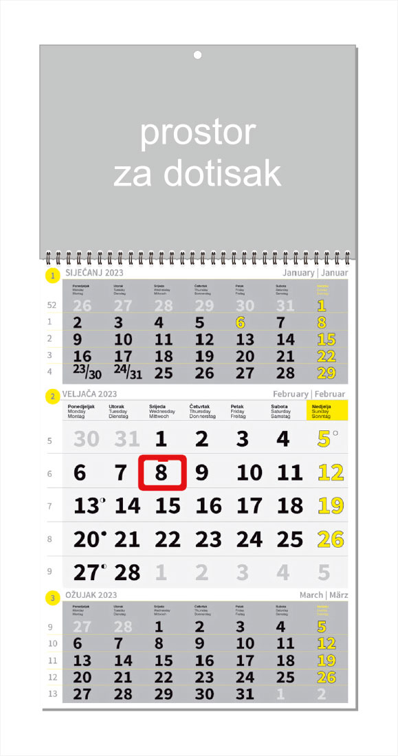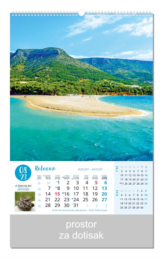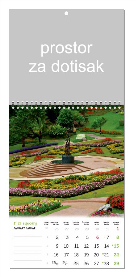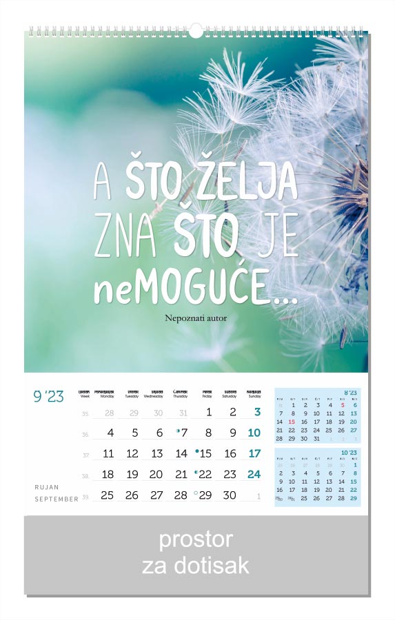 - dotisak: Mogućnost dotiska reklamnog sadržaja na ZAGLAVLJE kalendara