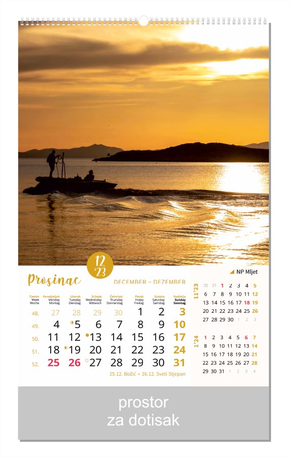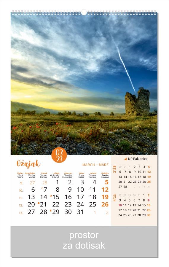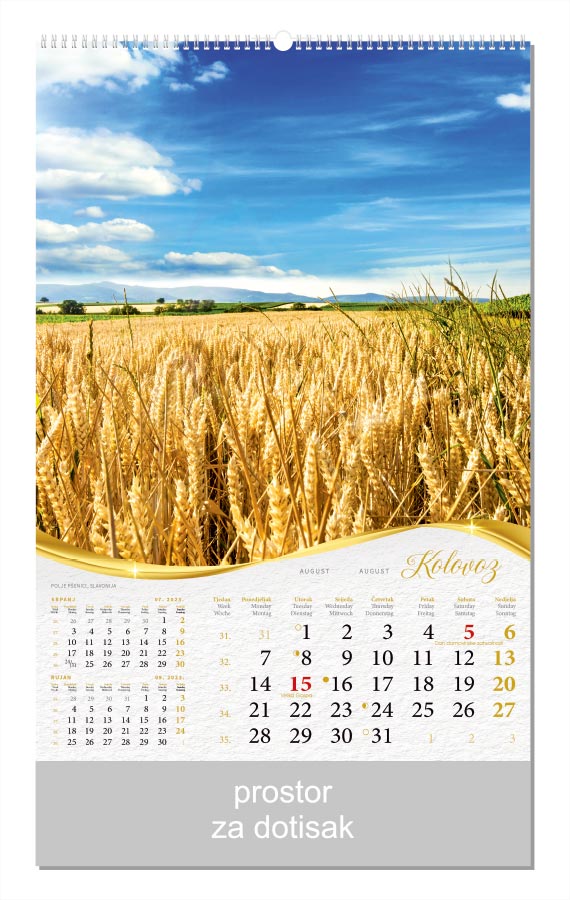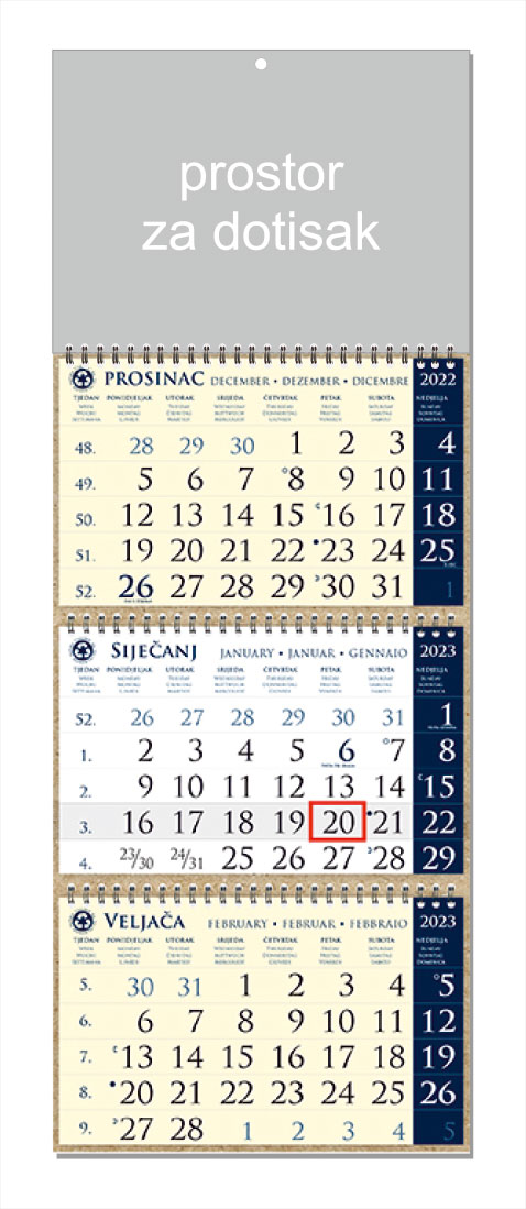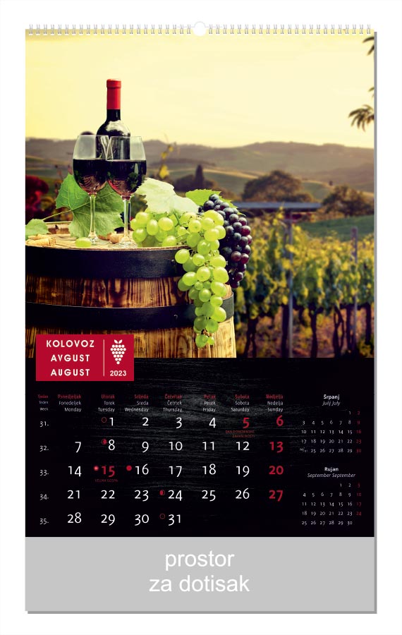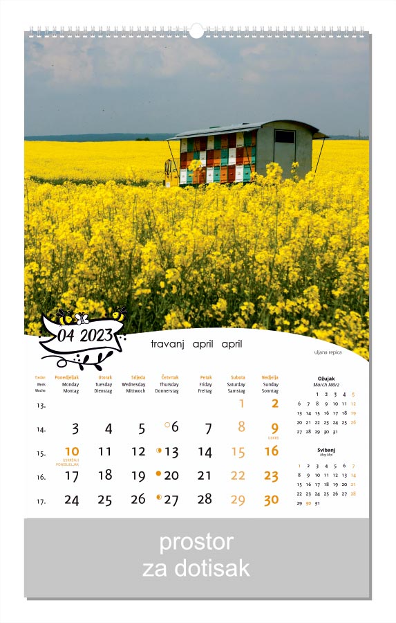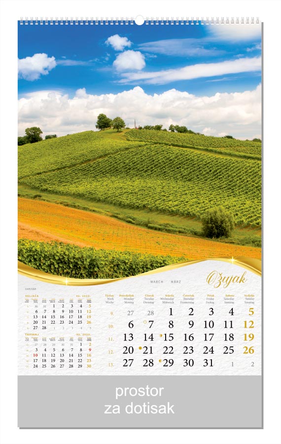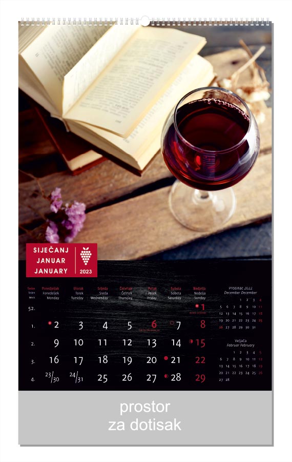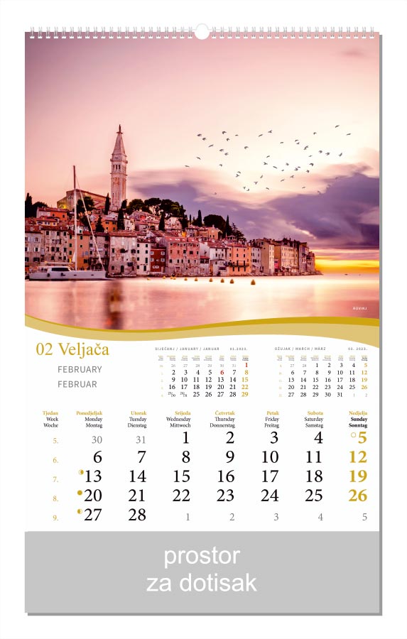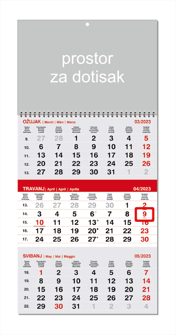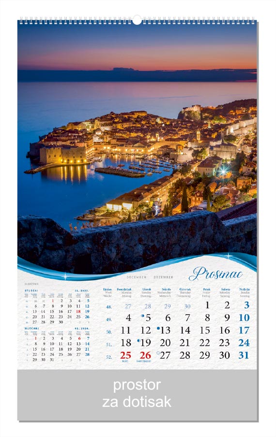 - dotisak: Mogućnost dotiska reklamnog sadržaja na ZAGLAVLJE kalendara
