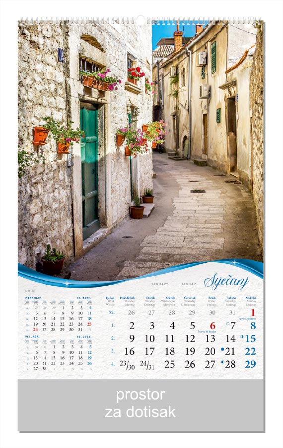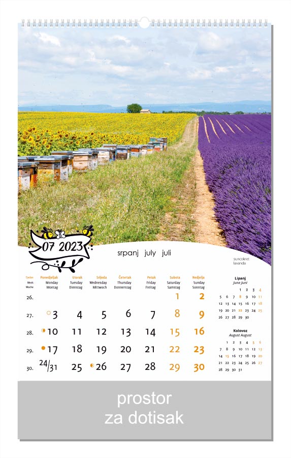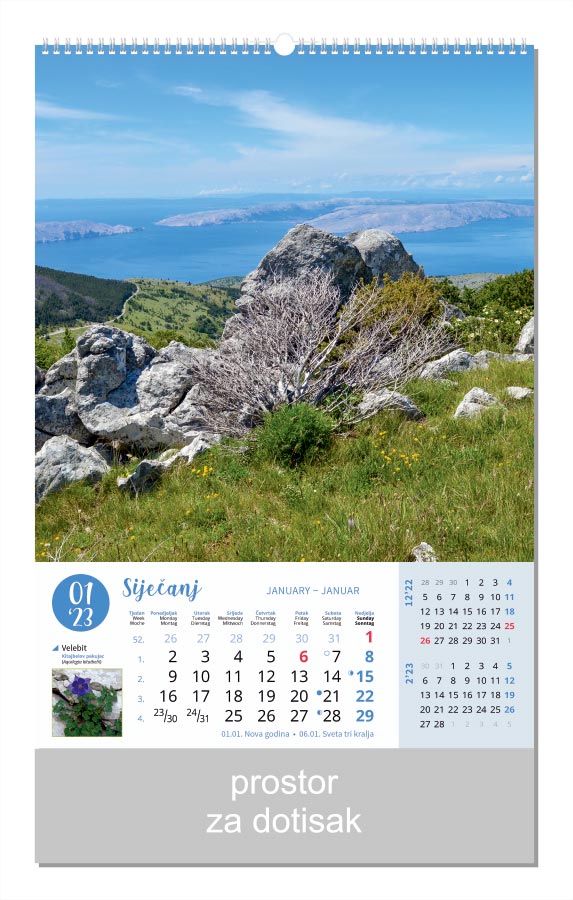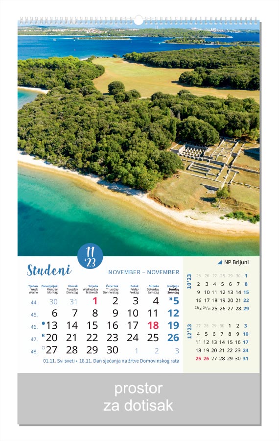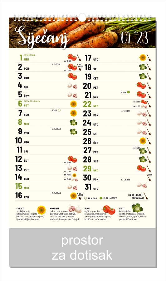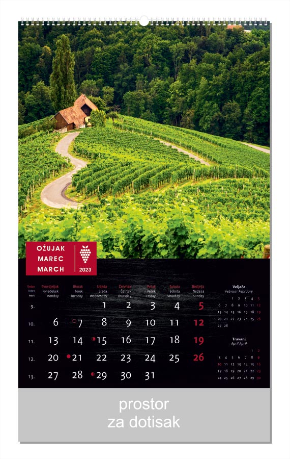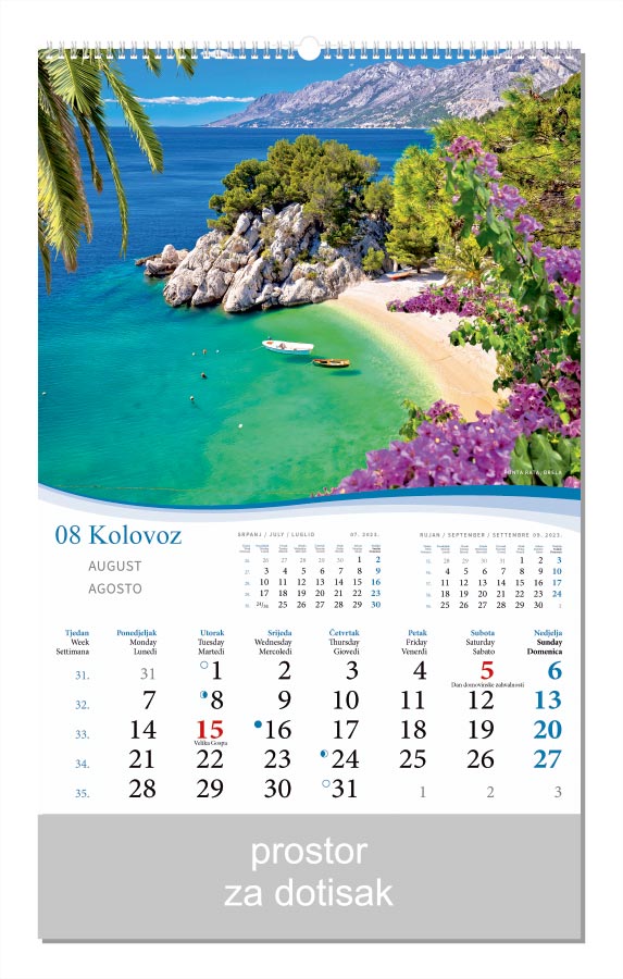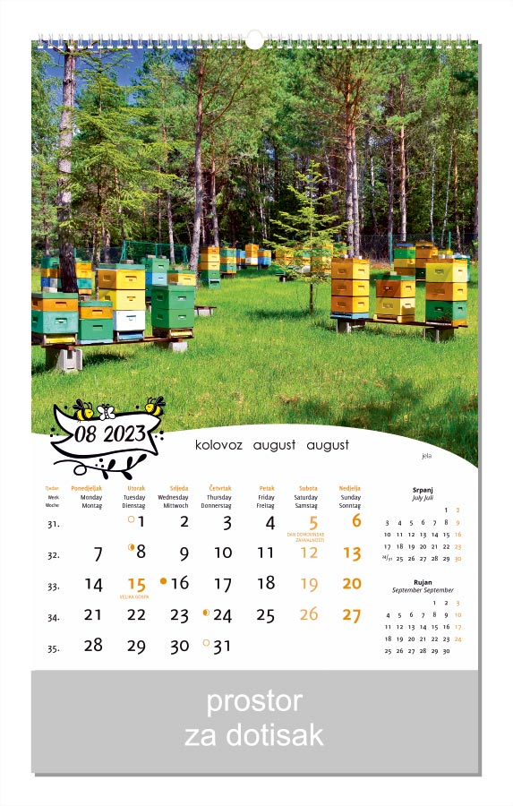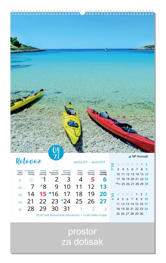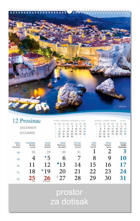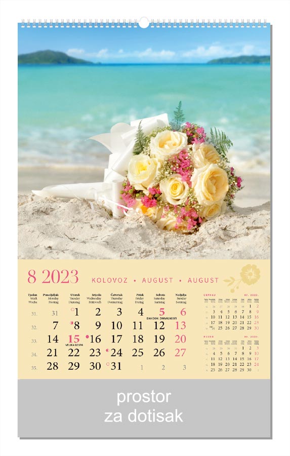 - dotisak: Mogućnost dotiska reklamnog sadržaja na ZAGLAVLJE kalendara