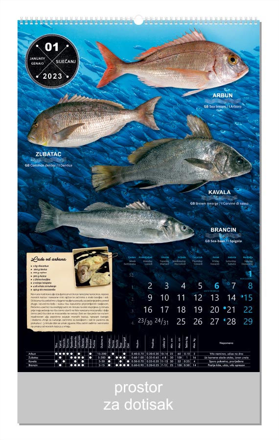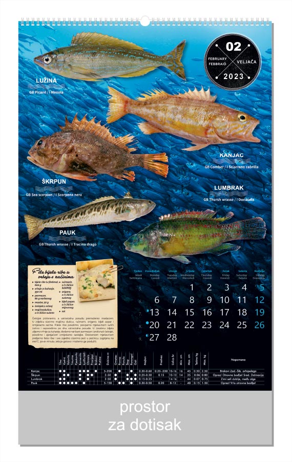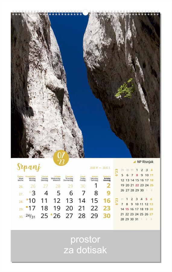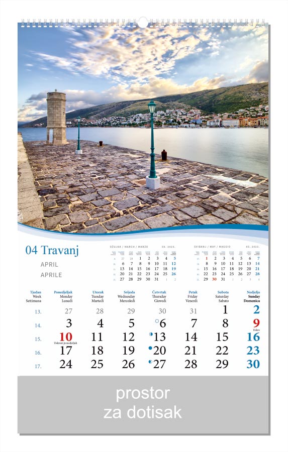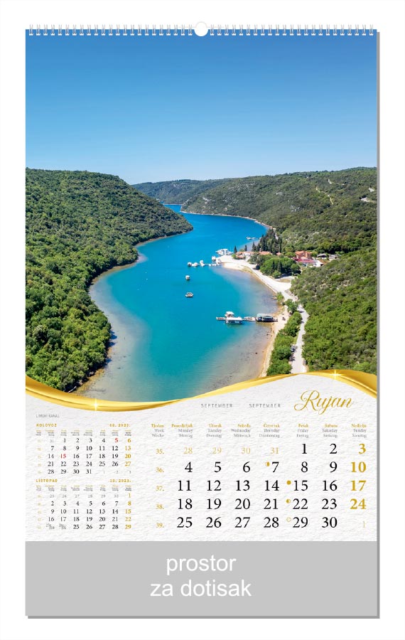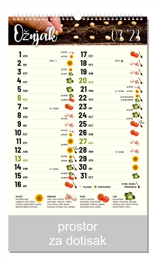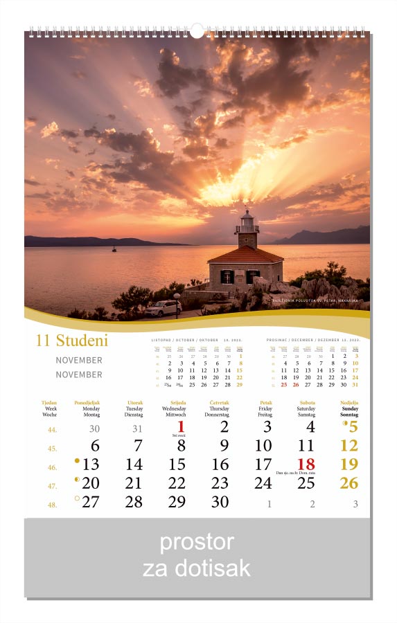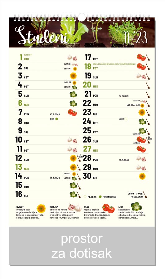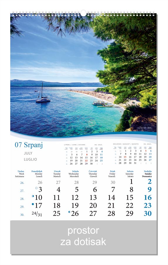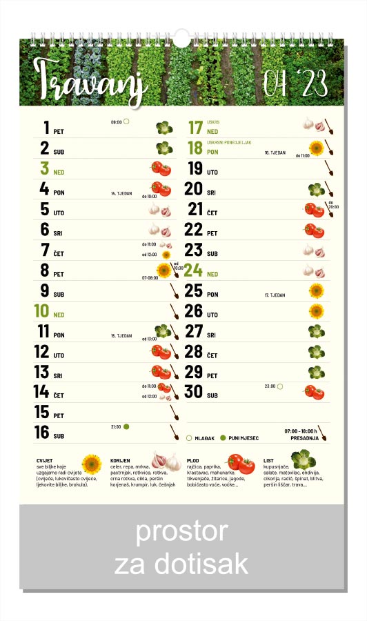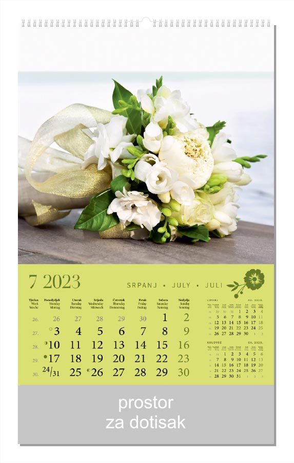 - dotisak: Mogućnost dotiska reklamnog sadržaja na ZAGLAVLJE kalendara
