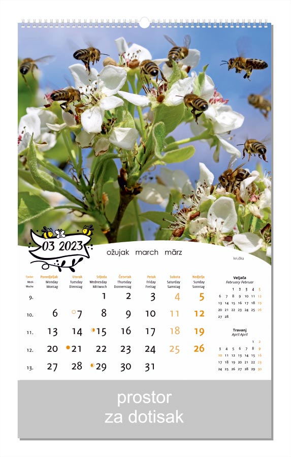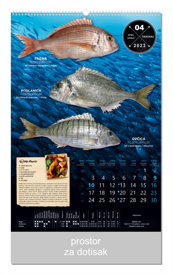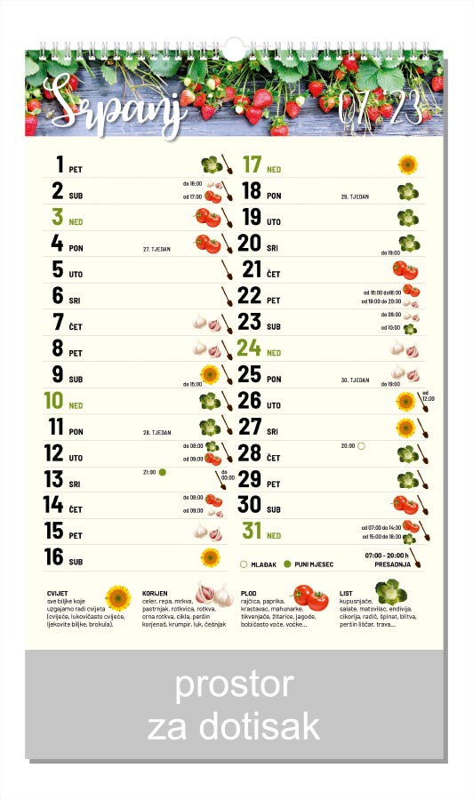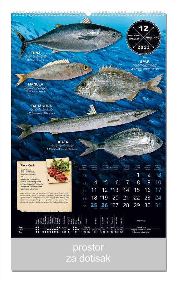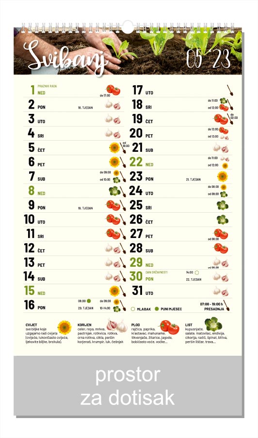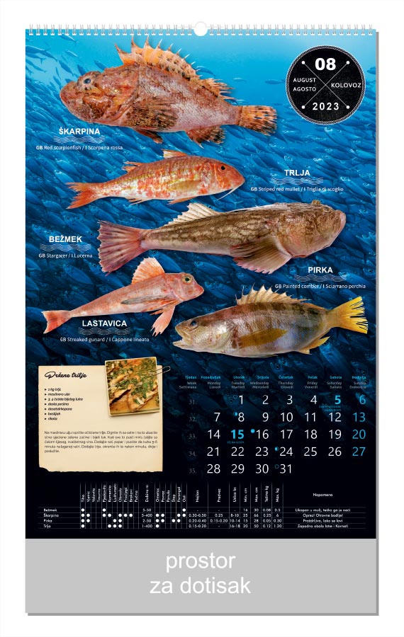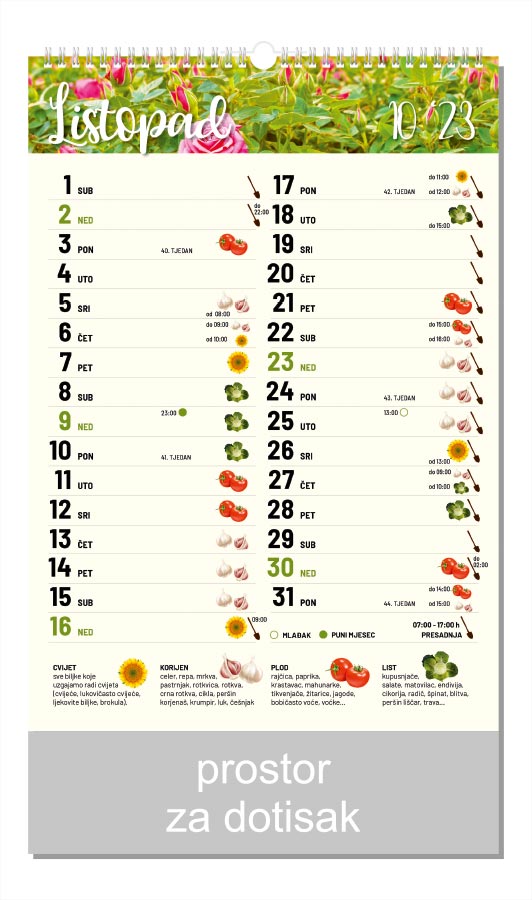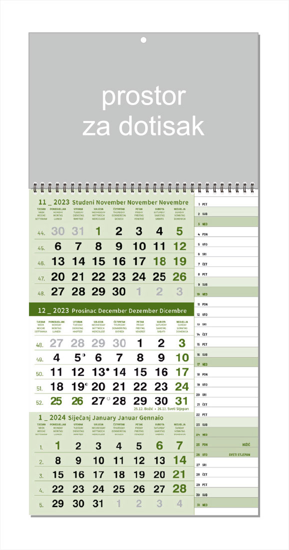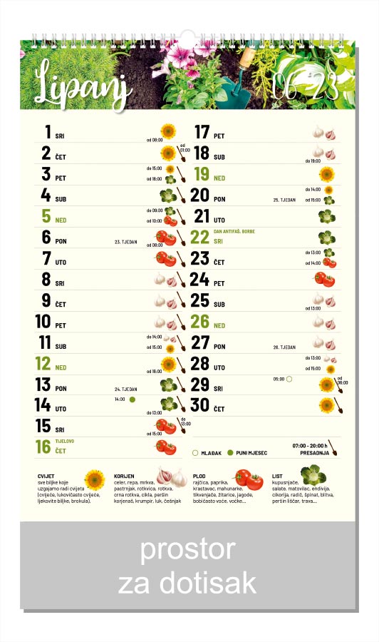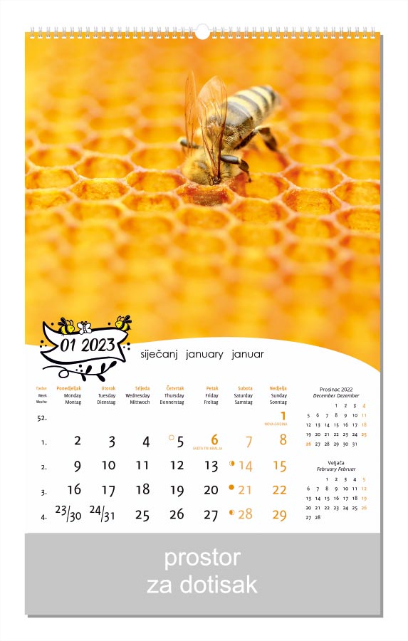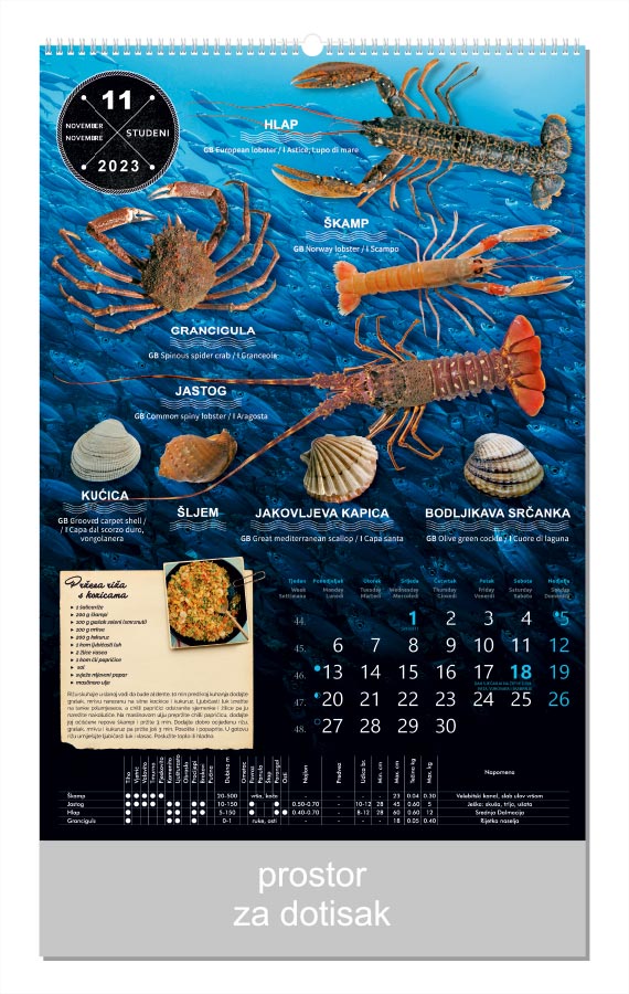 - dotisak: Mogućnost dotiska reklamnog sadržaja na ZAGLAVLJE kalendara
