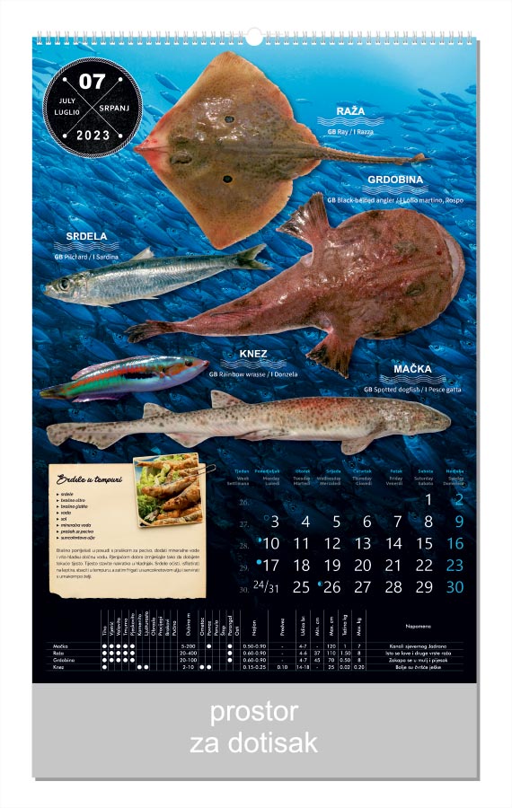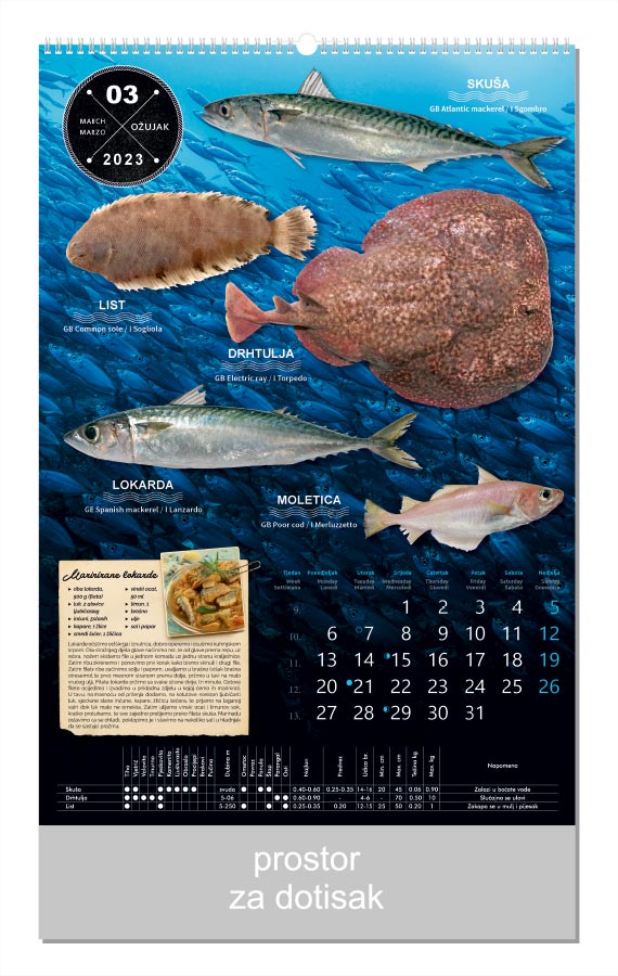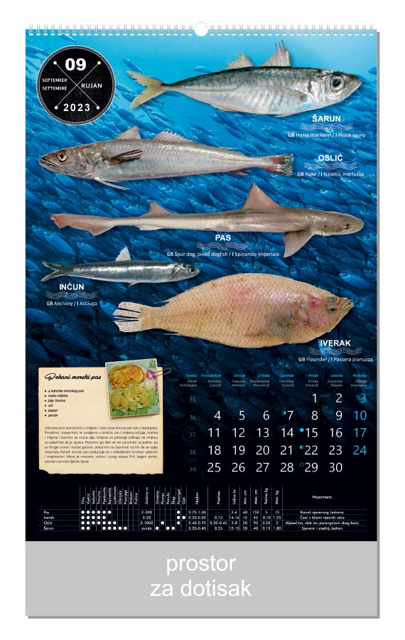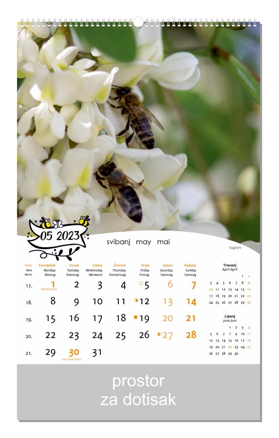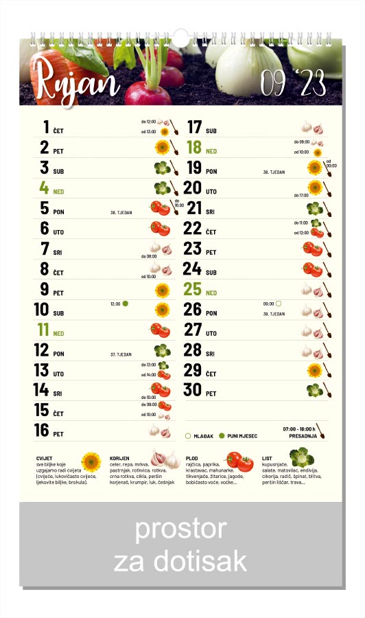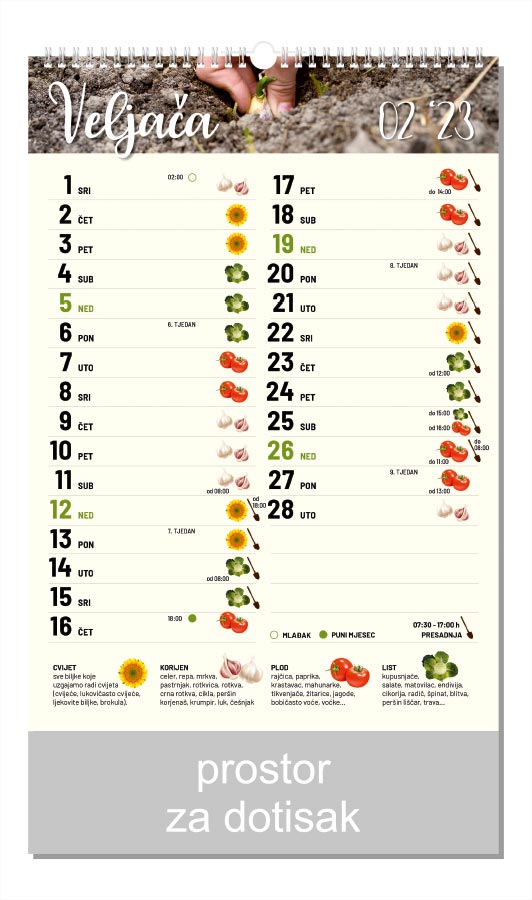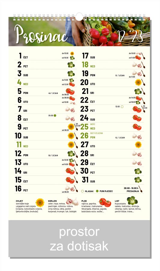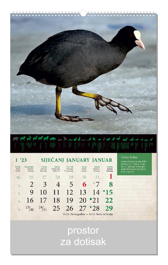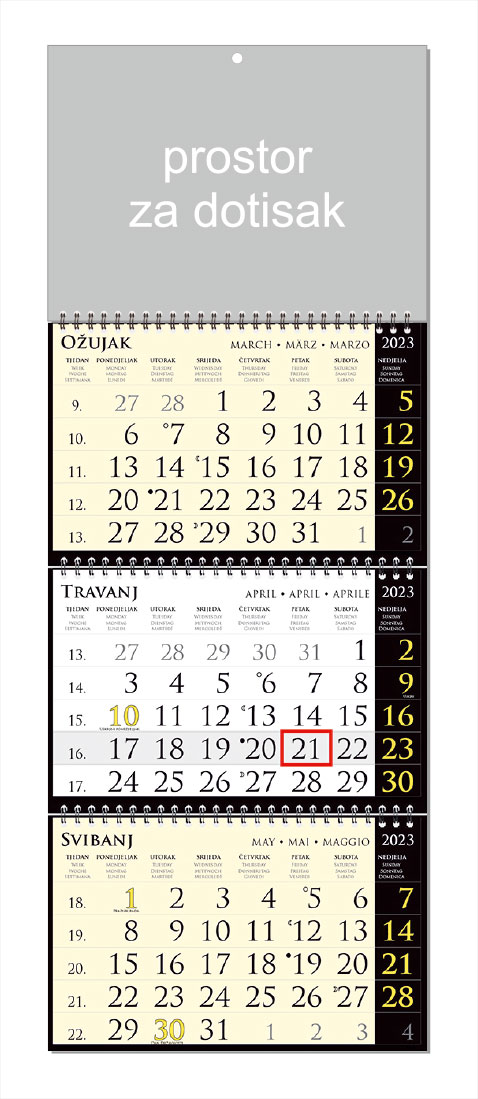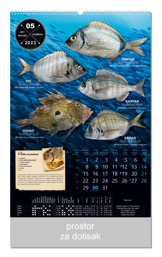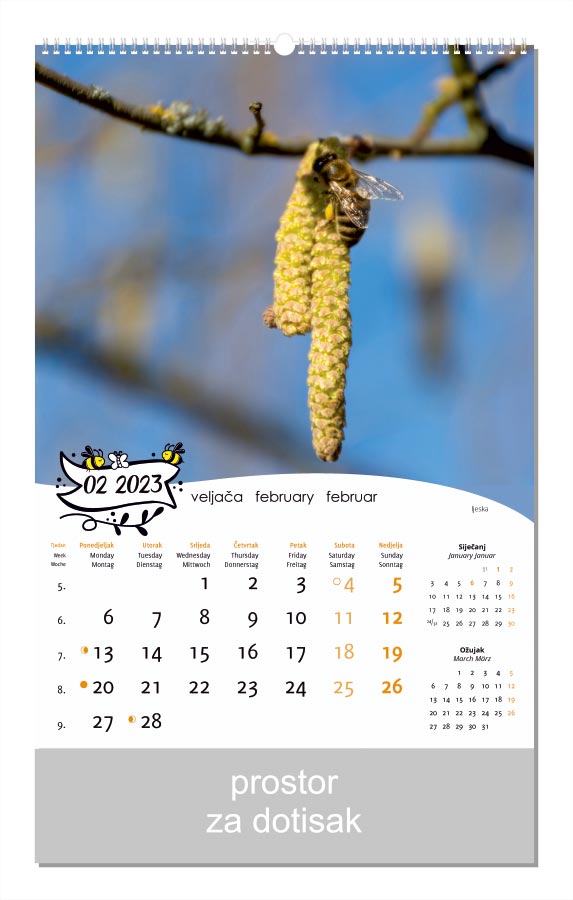 - dotisak: Mogućnost dotiska reklamnog sadržaja na ZAGLAVLJE kalendara