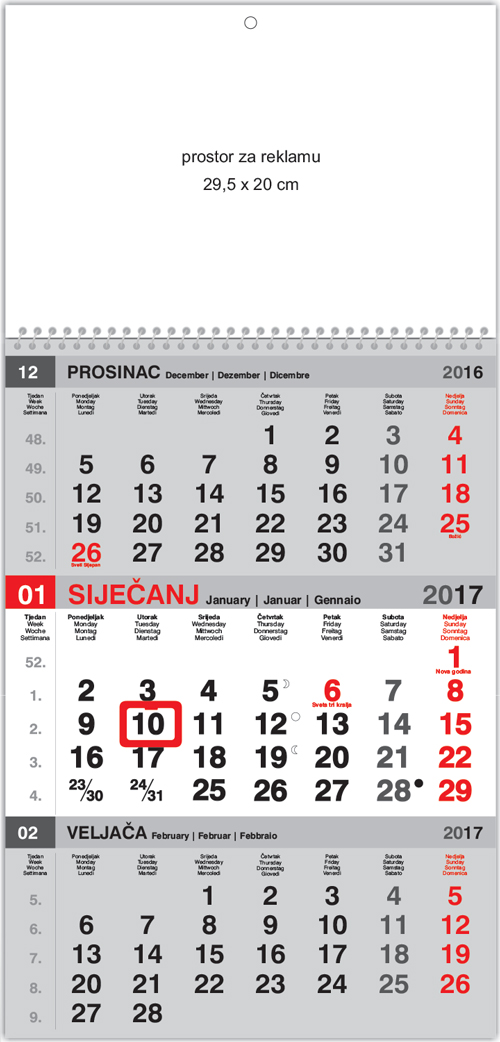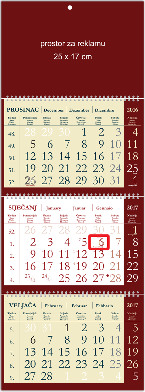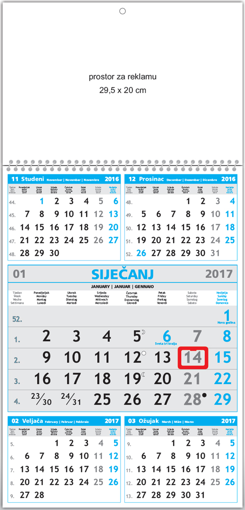 - Trodjelni poslovni kalendari – model "Plavi" (5.mjeseci)
