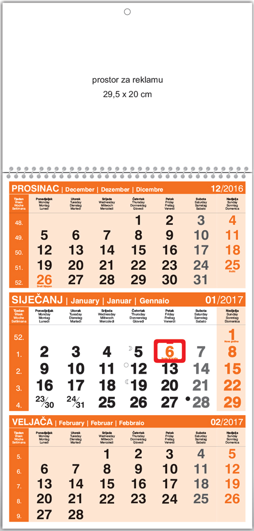 - Trodjelni poslovni kalendar – model "Narančasti"