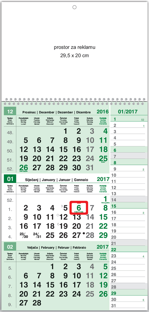 - Trodjelni poslovni kalendar – model "Zeleni" (planer)