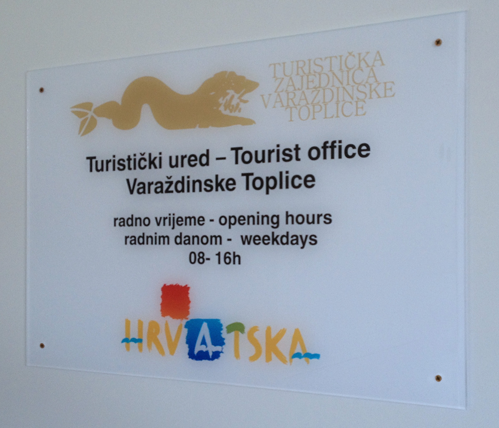 Za izradu natpisne ploče korišten je PERSPEX - ljevano mutno akrilno staklo debljine 4 mm.