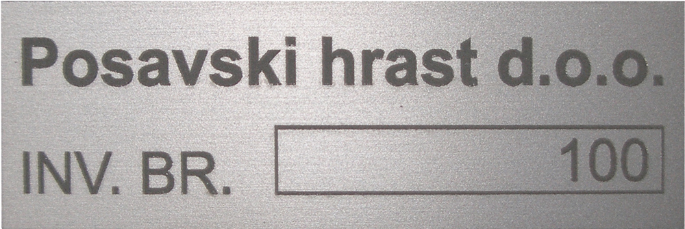 Za izradu natpisnih pločica korišten je ELOKSIRANI ALUMINIJ deb. 2 mm i 0,5 mm