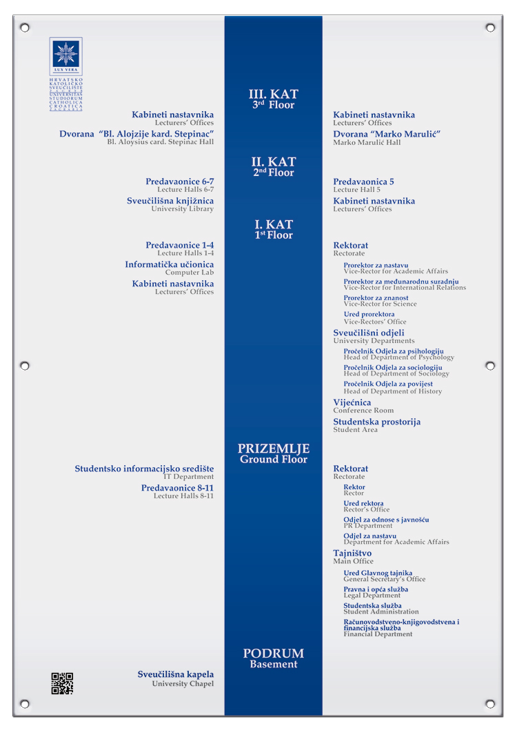 Tehnika izrade: Direktni UV print full color na pločasti materijal te zaštitna laminacija