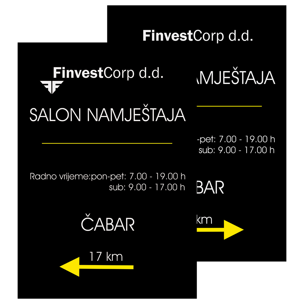 Za izradu obostrane putokazne ploče korišten je DIBOND debljine 3 mm.