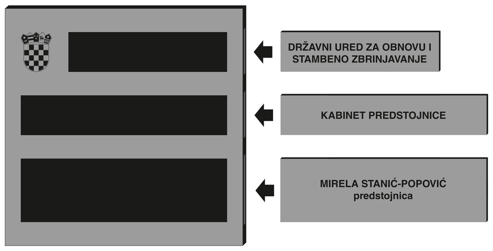 | NATPISNE PLOČE IZRAĐENE SUKLADNO UREDBI O NATPISNOJ PLOČI I ZAGLAVLJU AKTA TIJELA DRŽAVNE UPRAVE, LOKALNE, PODRUČNE (REGIONALNE) I MJESNE SAMOUPRAVE TE PRAVNIH OSOBA KOJE IMAJU JAVNE OVLASTI ("Narodne novine" broj 34/02) |