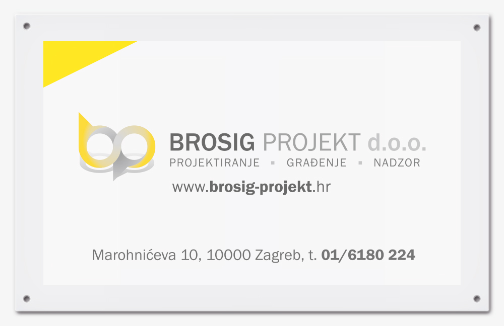 za izradu natpisnih ploča za tvrtku korišten je PERSPEX, ljevano prozirno akrilno staklo debljine 4 mm.