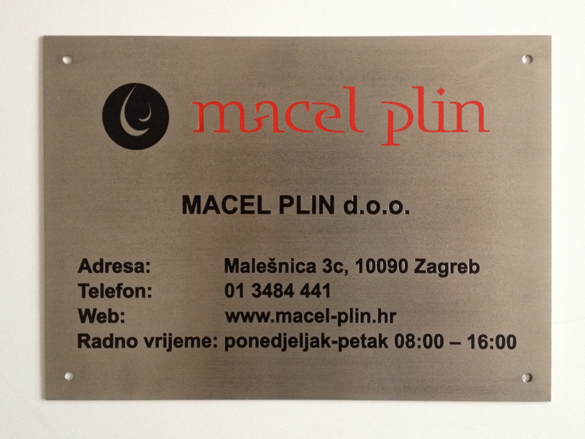 Za izradu natpisnih ploča korišten je brušeni INOX deb. 2 mm