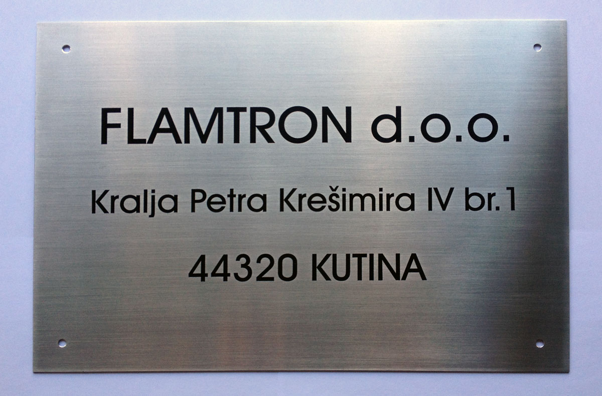 Za naručitelja FLAMATRON iz Kutine izrađena je natpisna ploča za isticanje tvrtke od brušenog, satiniranog inoxa deb. 2 mm