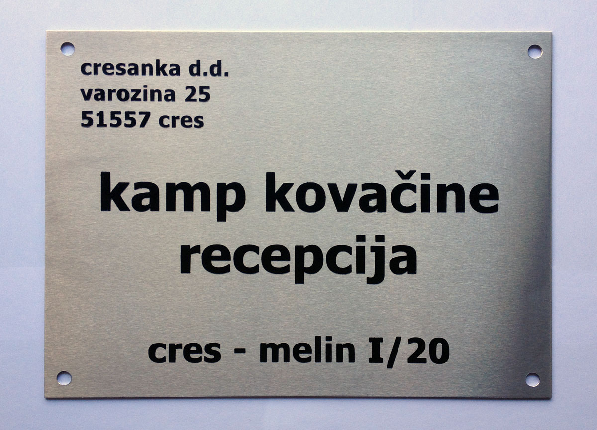 Za izradu natpisnih pločica korišten je ELOKSIRANI ALUMINIJ deb. 2 mm.